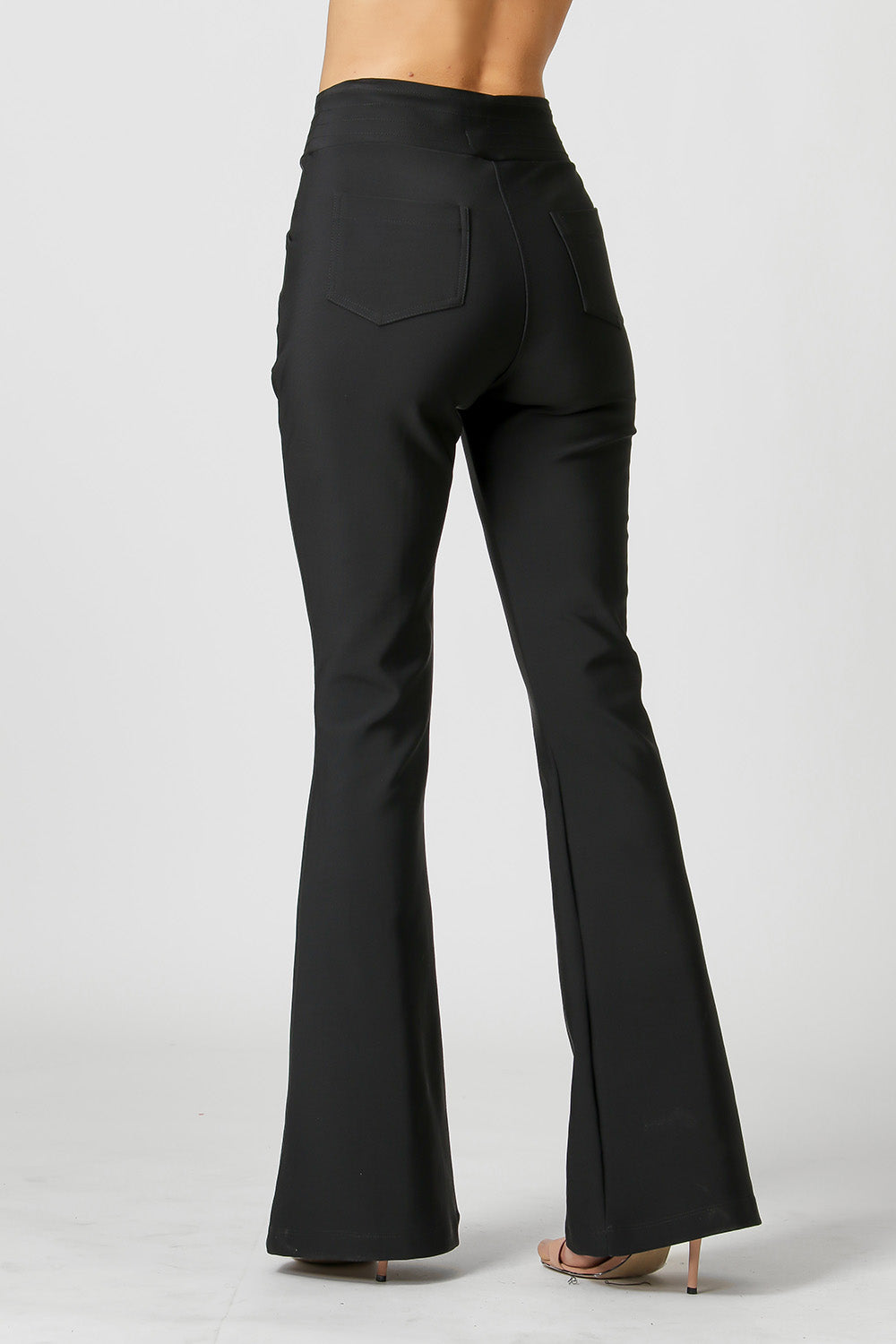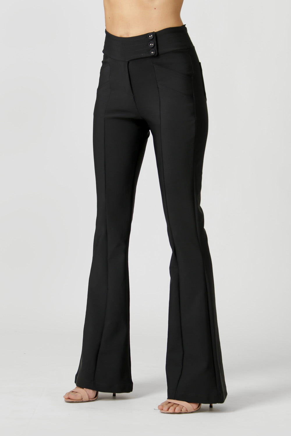 Calça confeccionada em malha, estilo flare, com detalhes de pespontos no cós, recortes verticais e também assimétricos com pespontos aparentes. É uma calça com modelo versátil, podendo ser usada de maniera mais despojada com um sapato baixo ou uma bota, e de maneira mais elegante com um sapato de salto alto. Peça chave no seu guarda roupa!