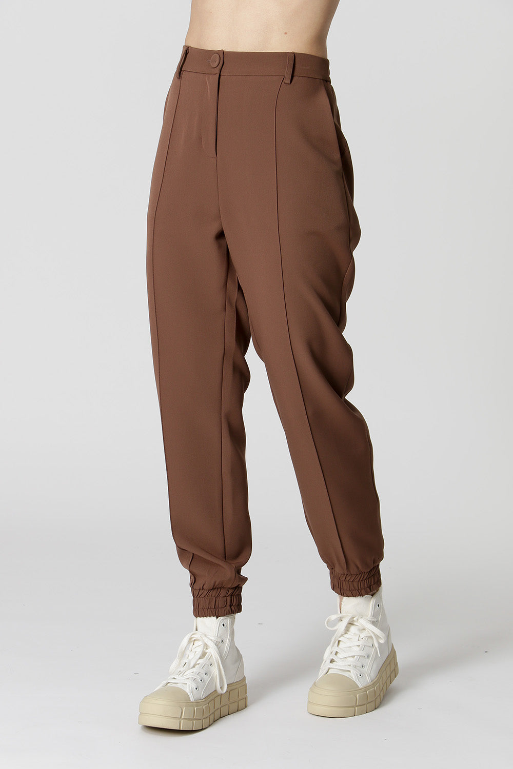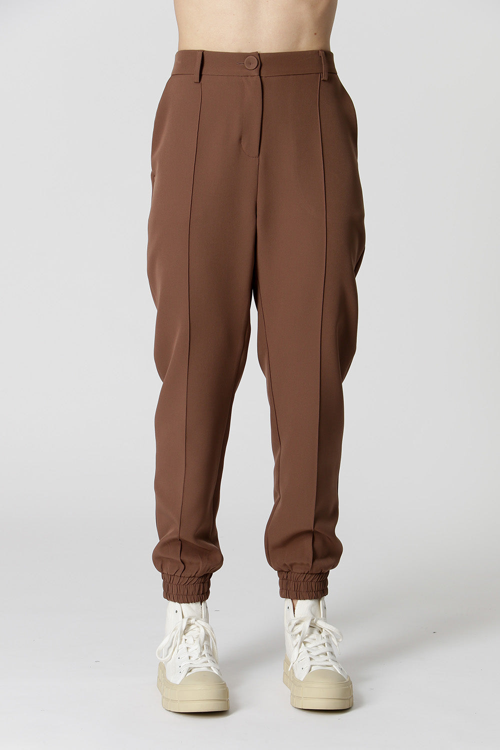 Calça Jogging com detalhe de recorte na frente e elástico. Peça feita em alfaiataria, perfeita para compor look work moderno e estiloso.