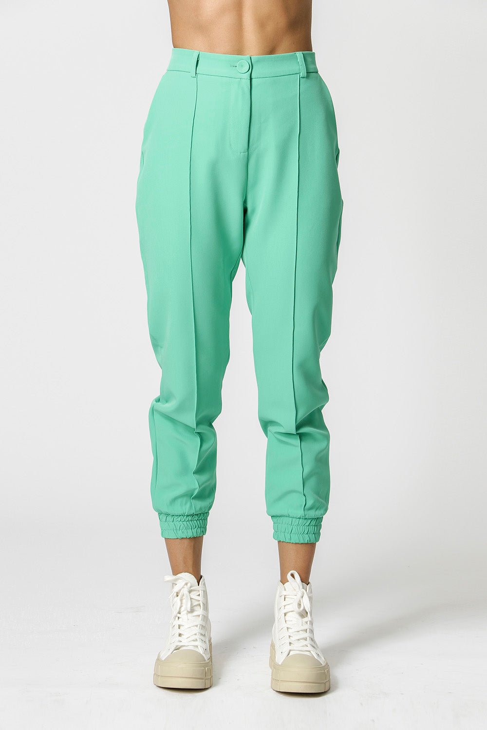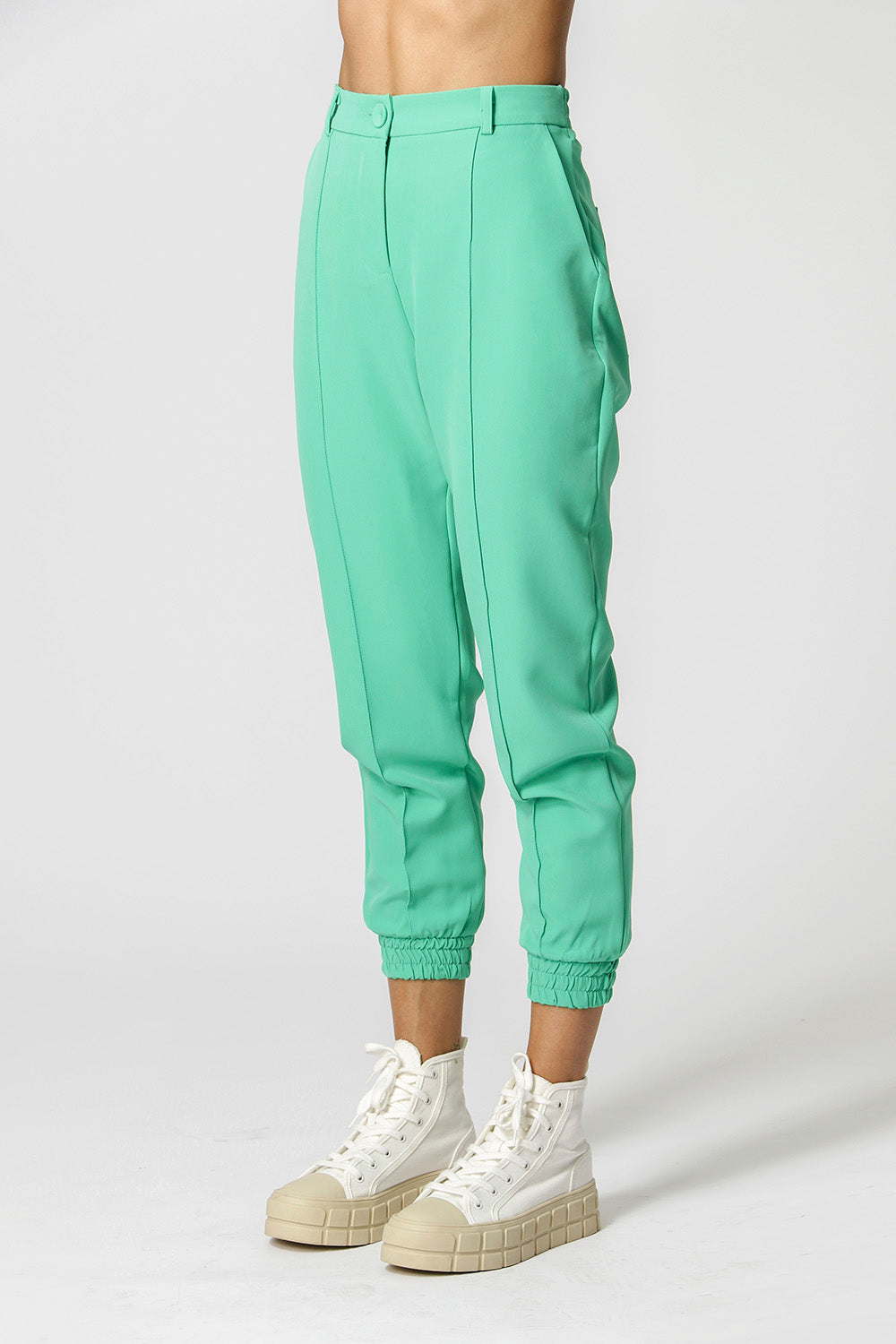Calça Jogging com detalhe de recorte na frente e elástico. Peça feita em alfaiataria, perfeita para compor look work moderno e estiloso.