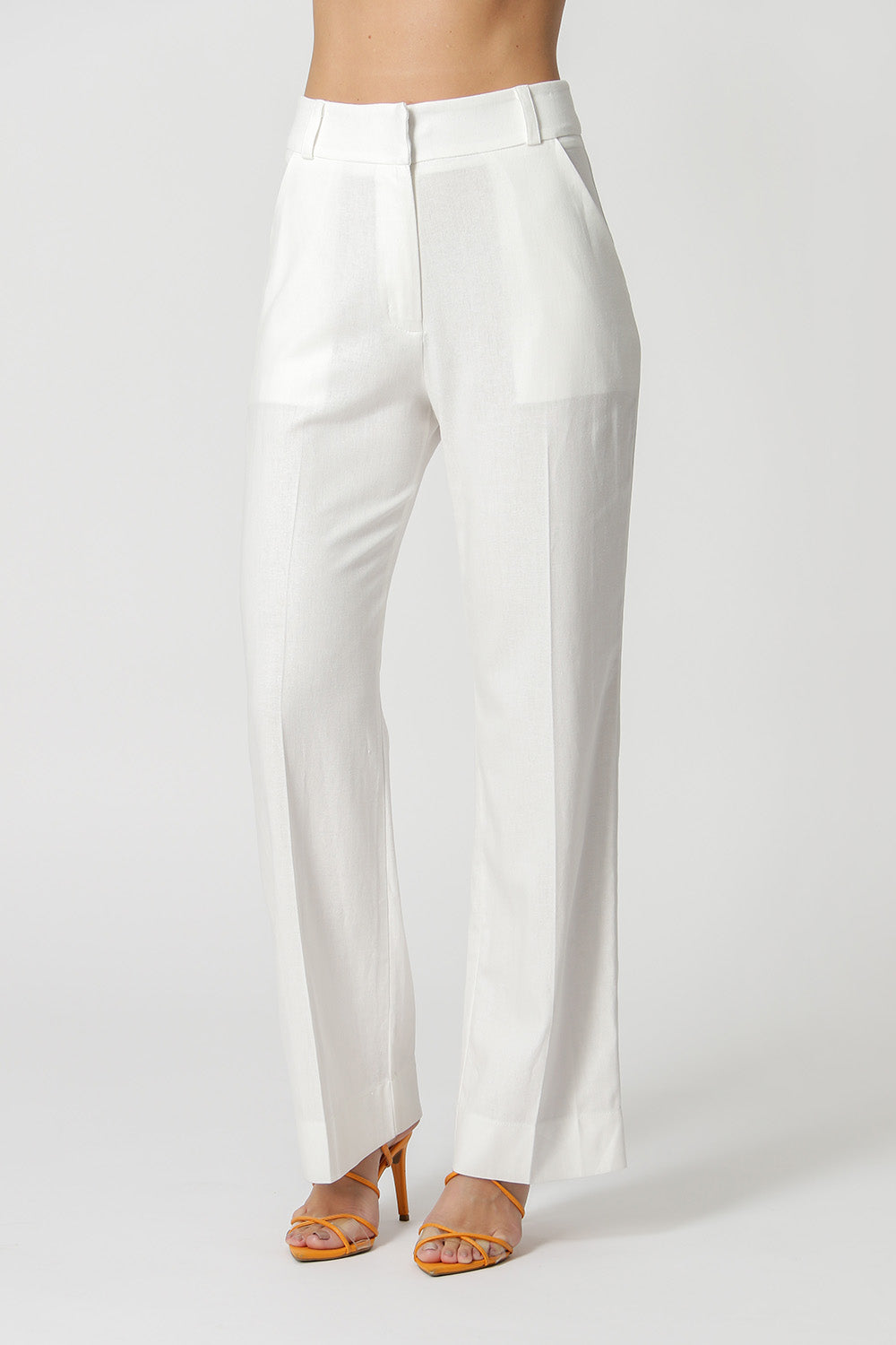 Calça com modelagem reta. Confeccionada em tecido linho viscose. Uma peça elegante e ideal para mood casual.