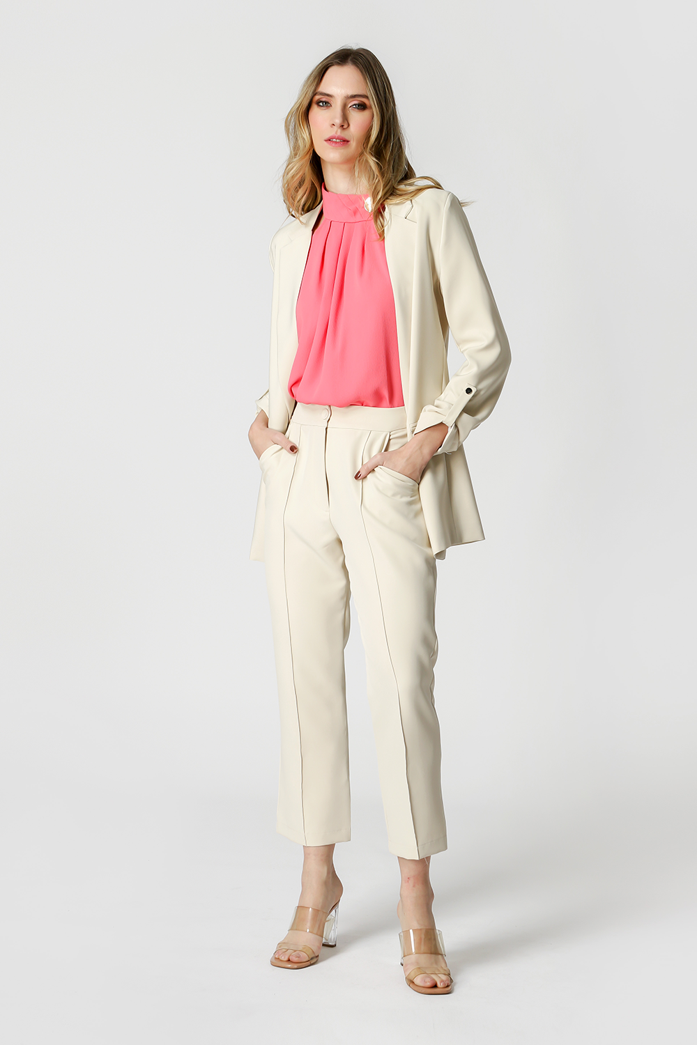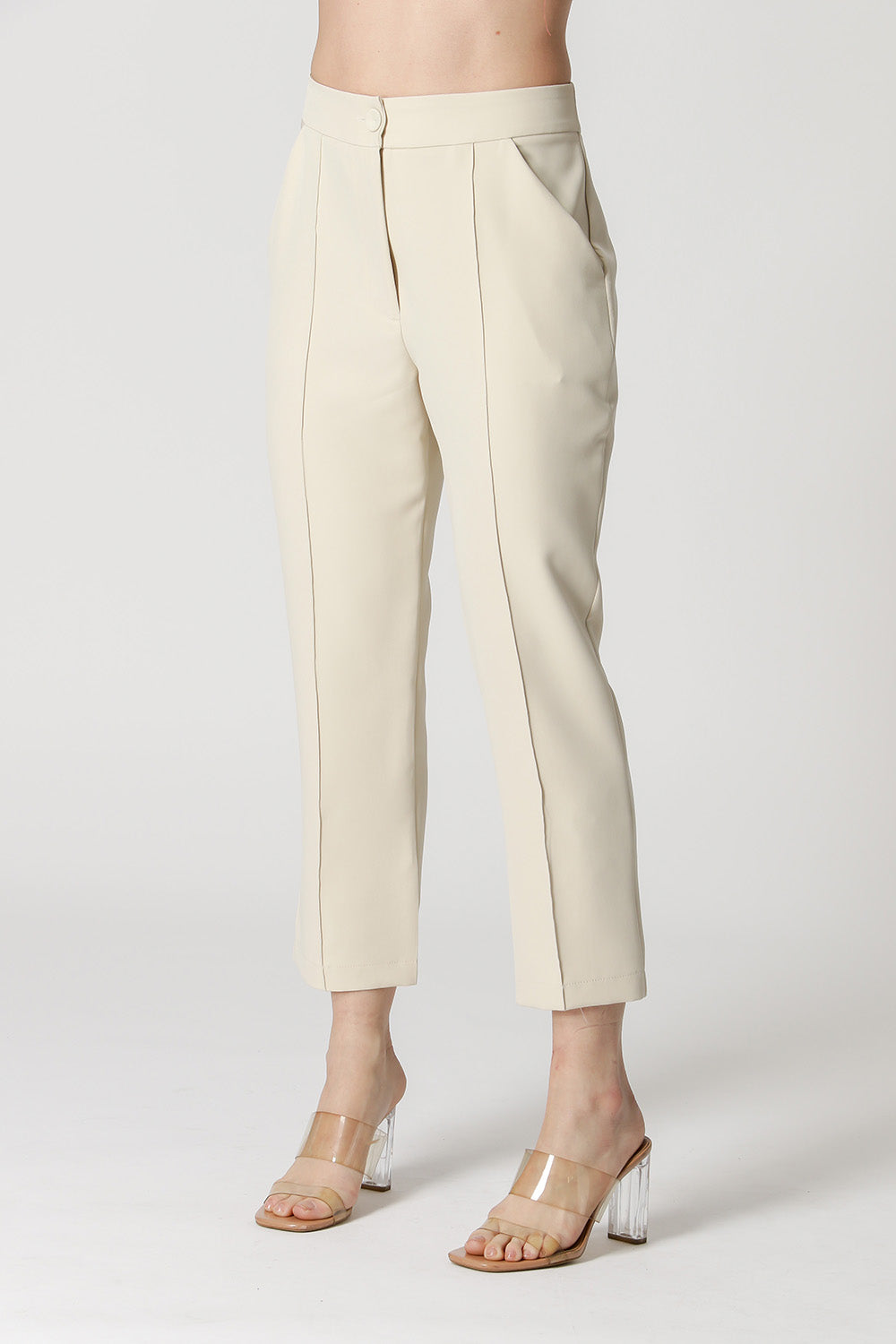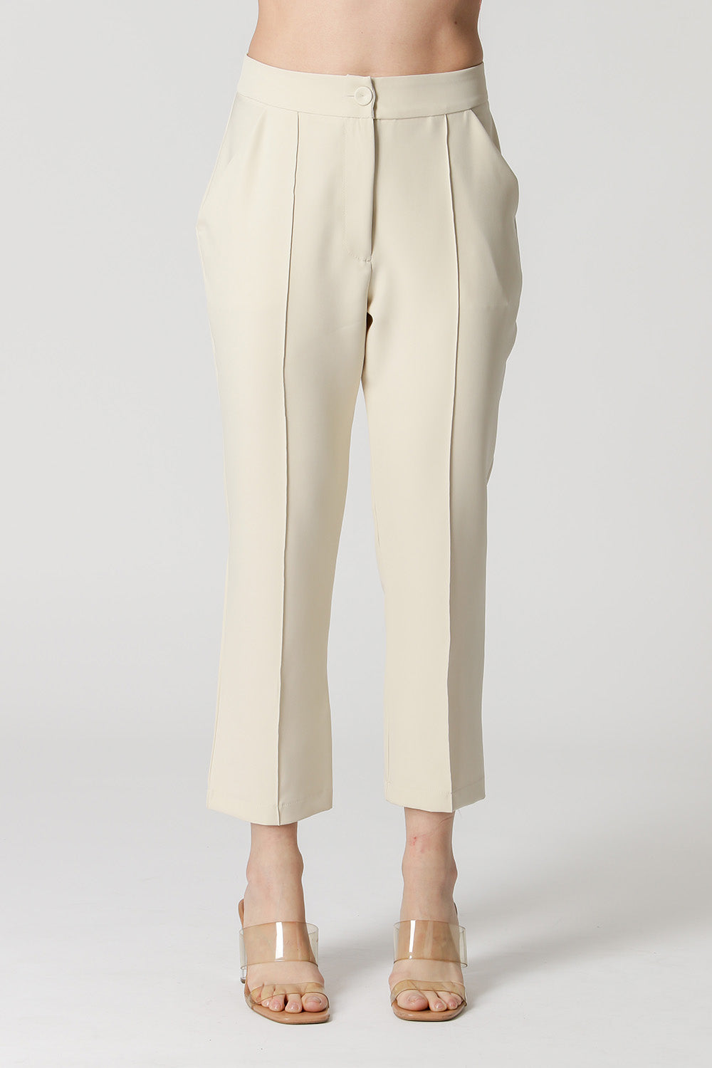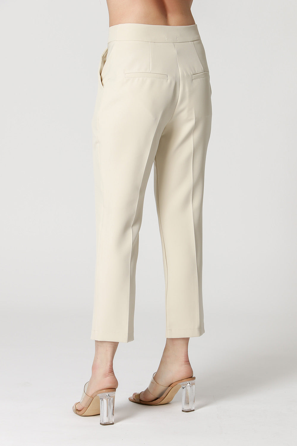 Calça pantacourt de alfaiataria, com recorte frontal e bolso faca, uma peça versátil para diversos looks.