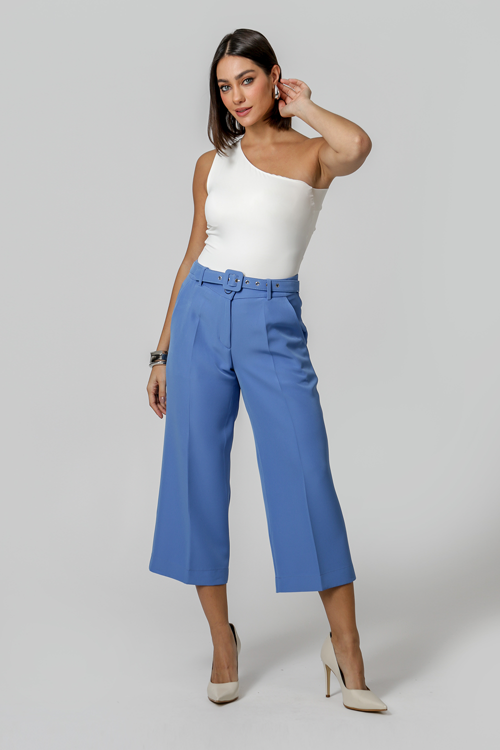 • Calça Pantacourt Com Cinto - AZUL CLARO