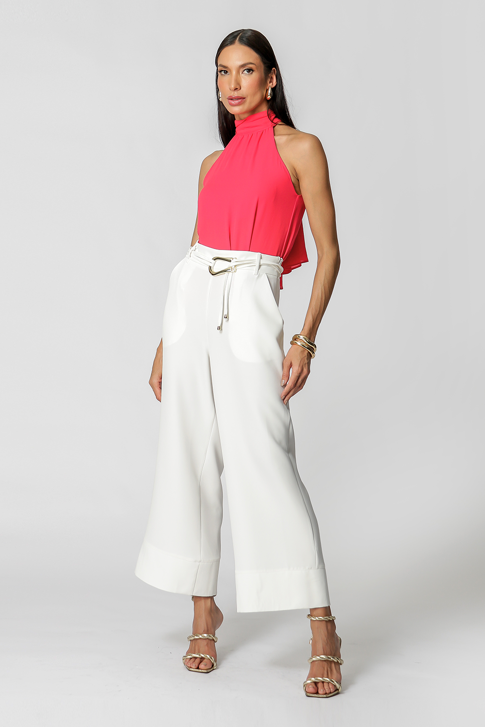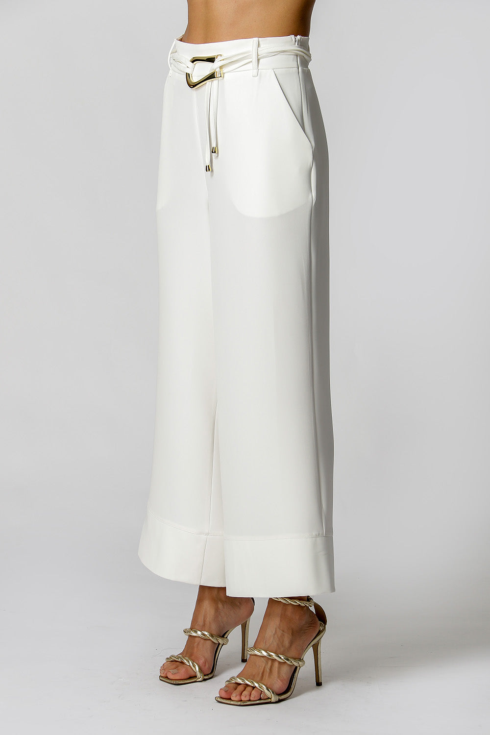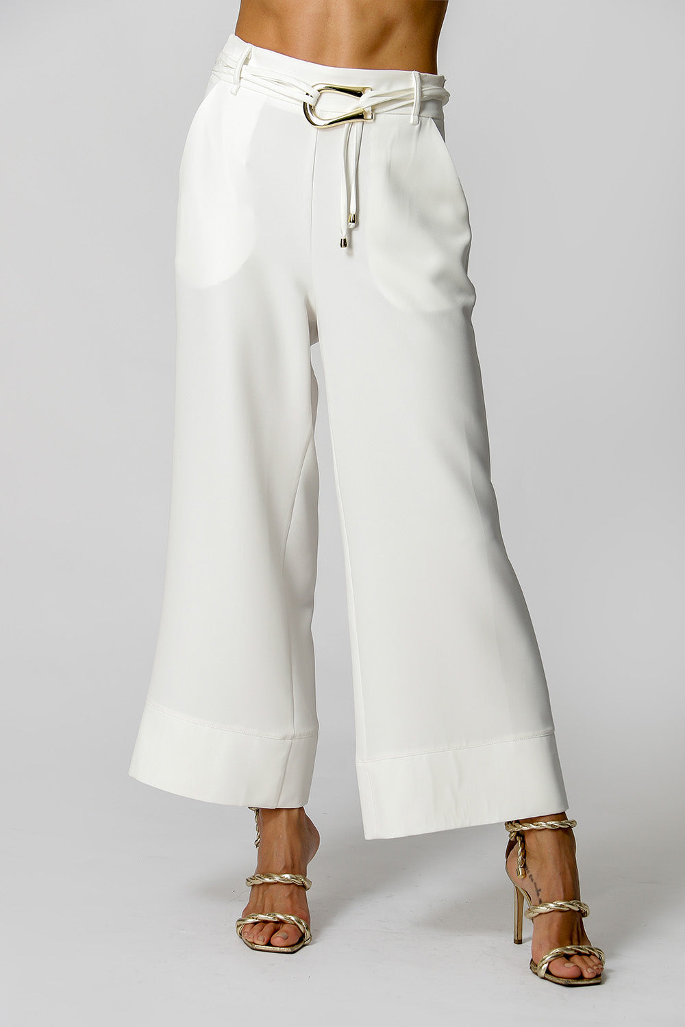 • Calça Pantacourt Com Cinto Diferenciado - OFF WHITE