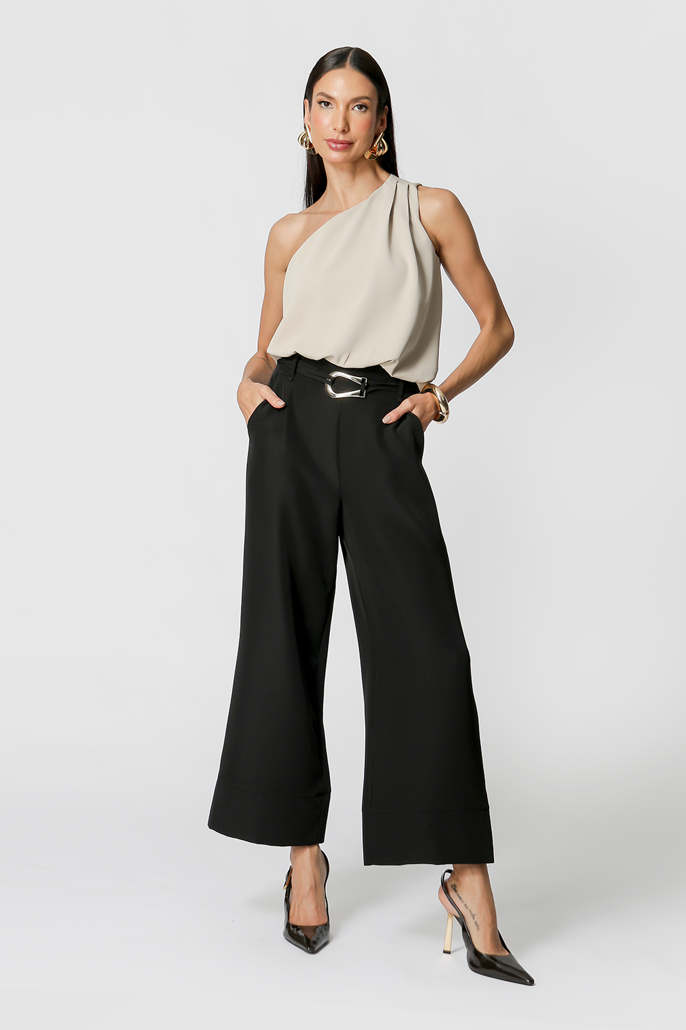 Calça pantacourt com cinto. Uma peça versátil para diversos looks work.