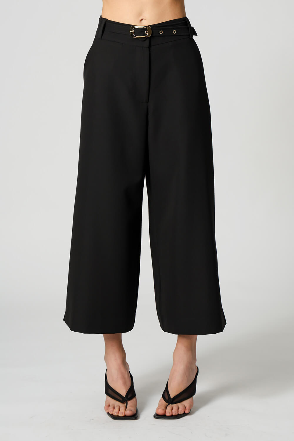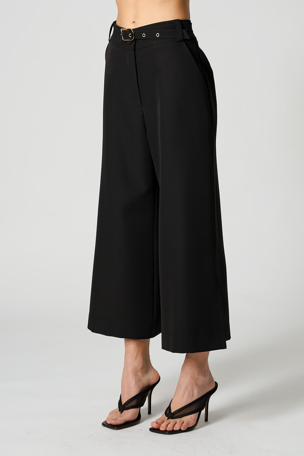 Calça Pantacourt Com Fenda e Cinto - PRETO
