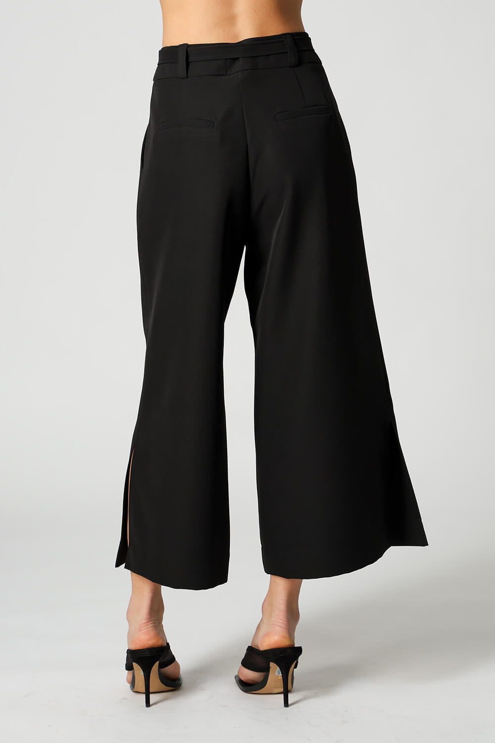 • Calça Pantacourt Com Fenda e Cinto - PRETO