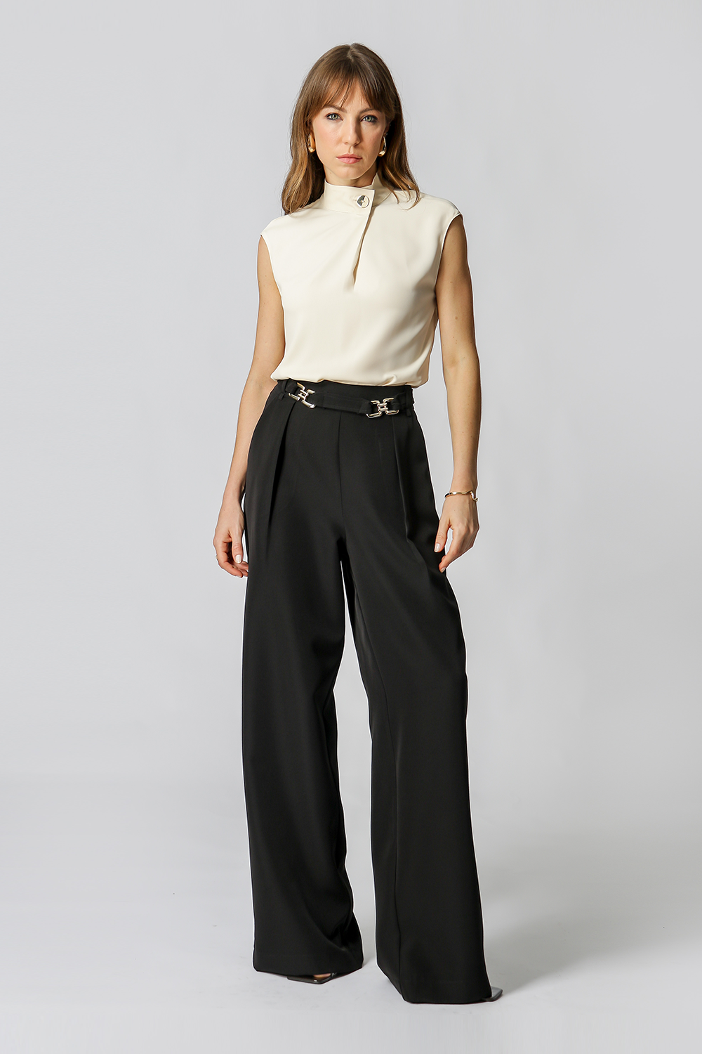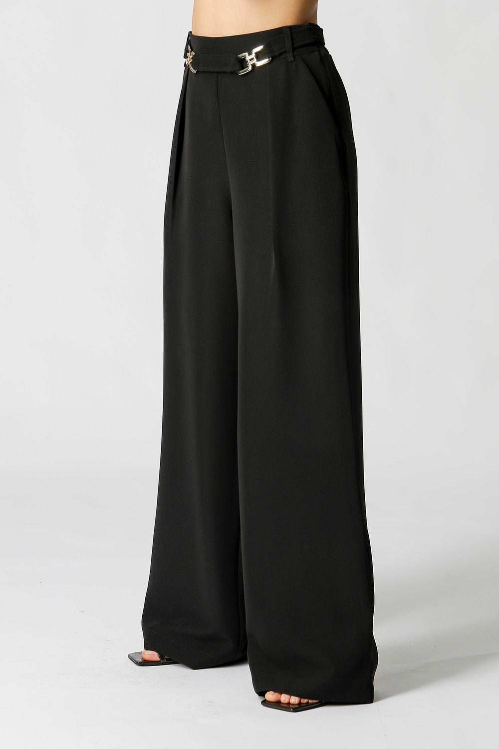 Calça pantalona em alfaiataria com cinto, modelo elegante e ideal para mood work, aposte!