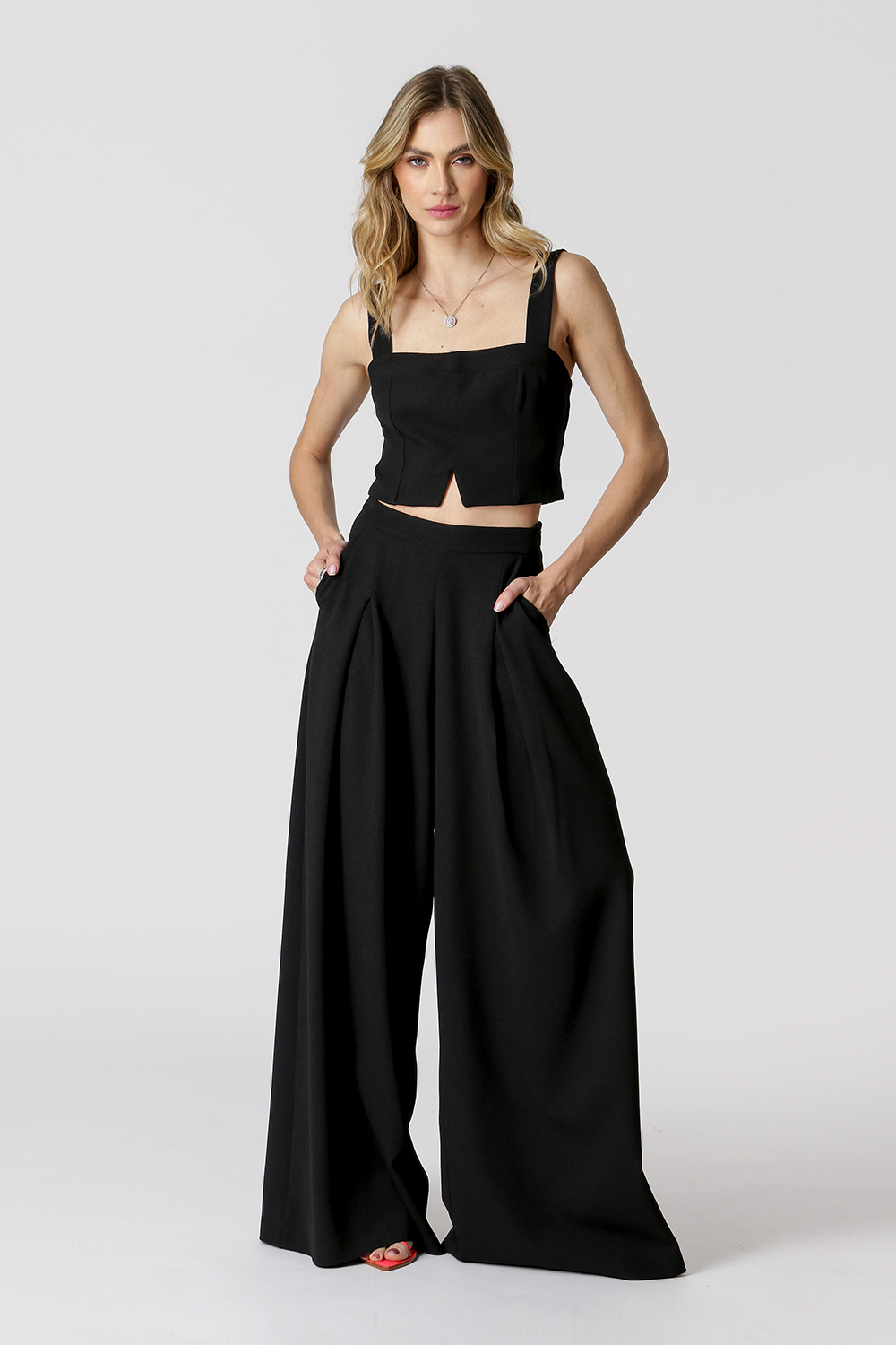 Calça pantalona ampla. Confeccionada em tecido linho. Um peça confortável, moderna e ideal para mood Work.