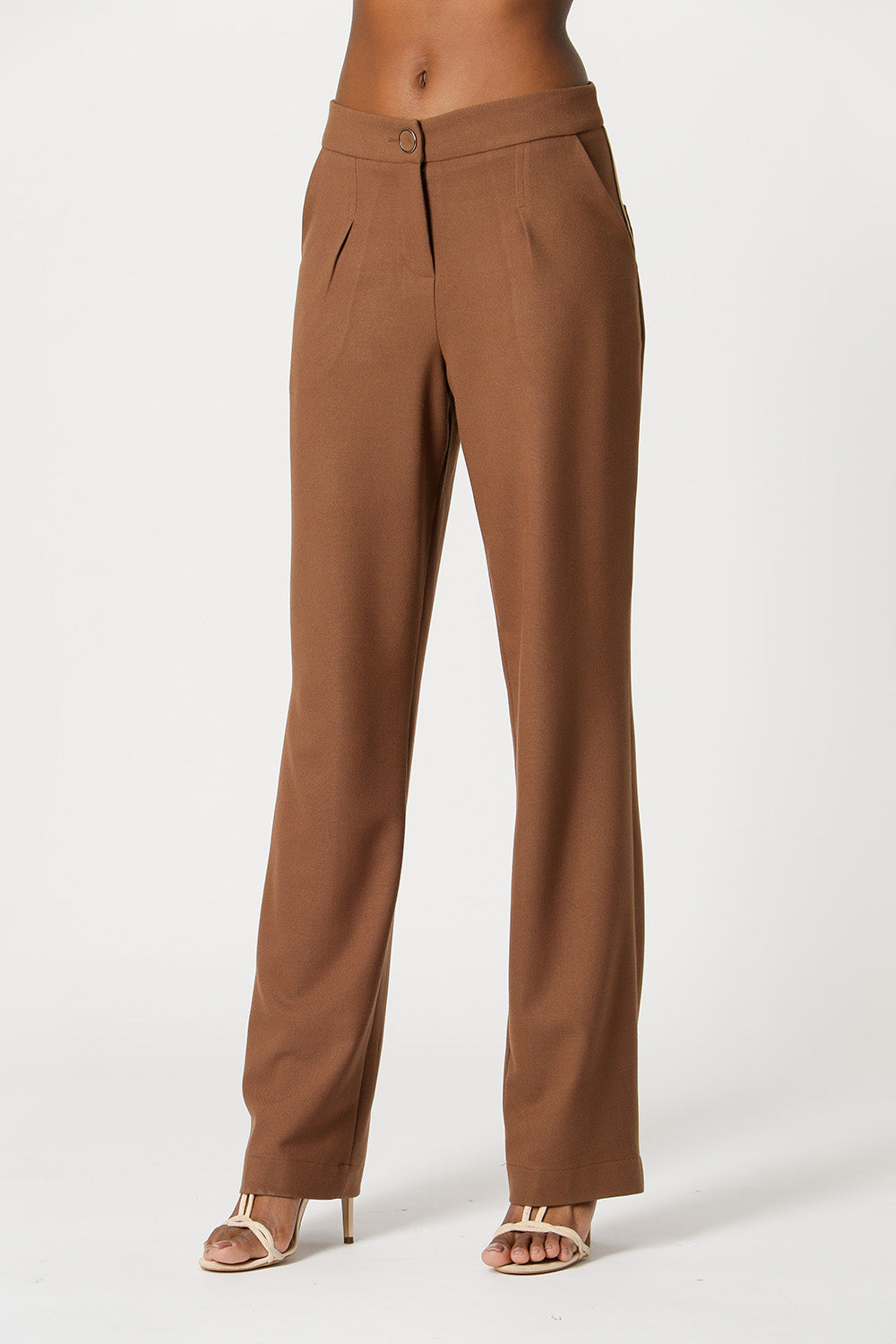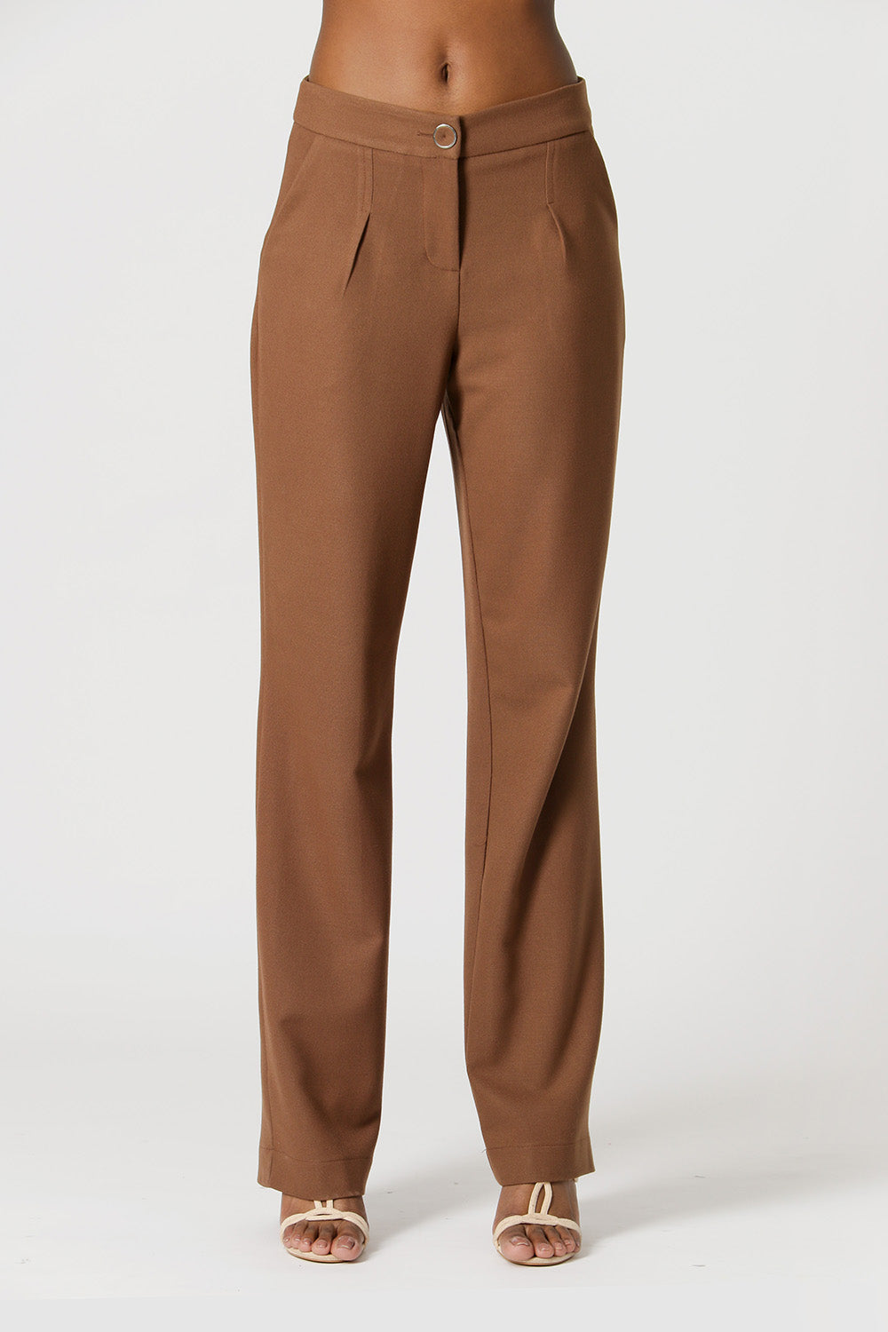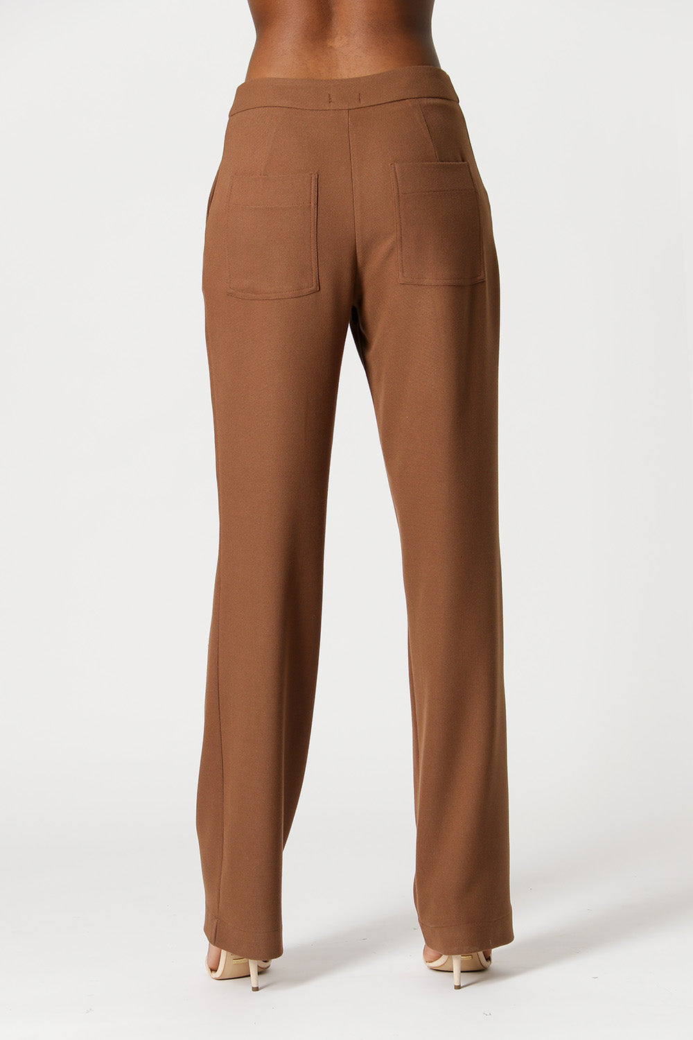 Calça pantalona com bolso e detalhe de pence na frente. Uma peça confeccionada com caimento leve e textura. Modelo elegante e confortável para compor mood work.