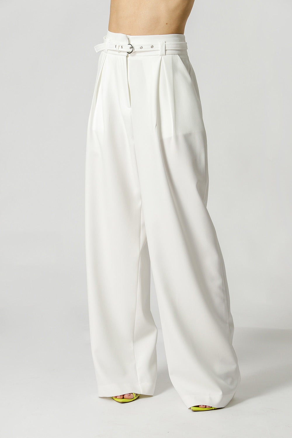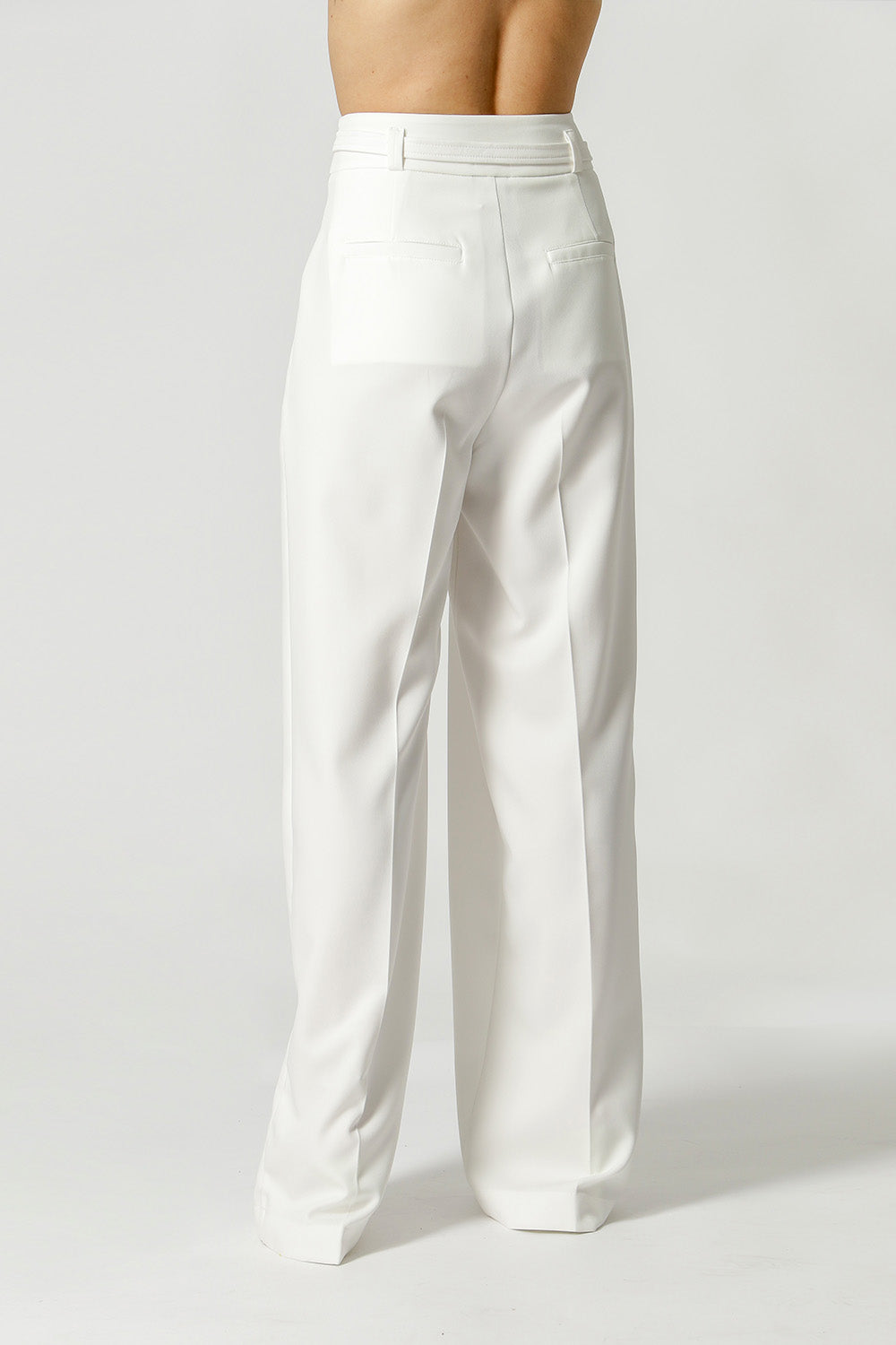Calça pantalona feita em alfaiataria. Possui bolso faca, detalhe de pregas e cinto do próprio tecido com fivela de metal. Peça clássica e atemporal que vai deixar seu look mais elegante!