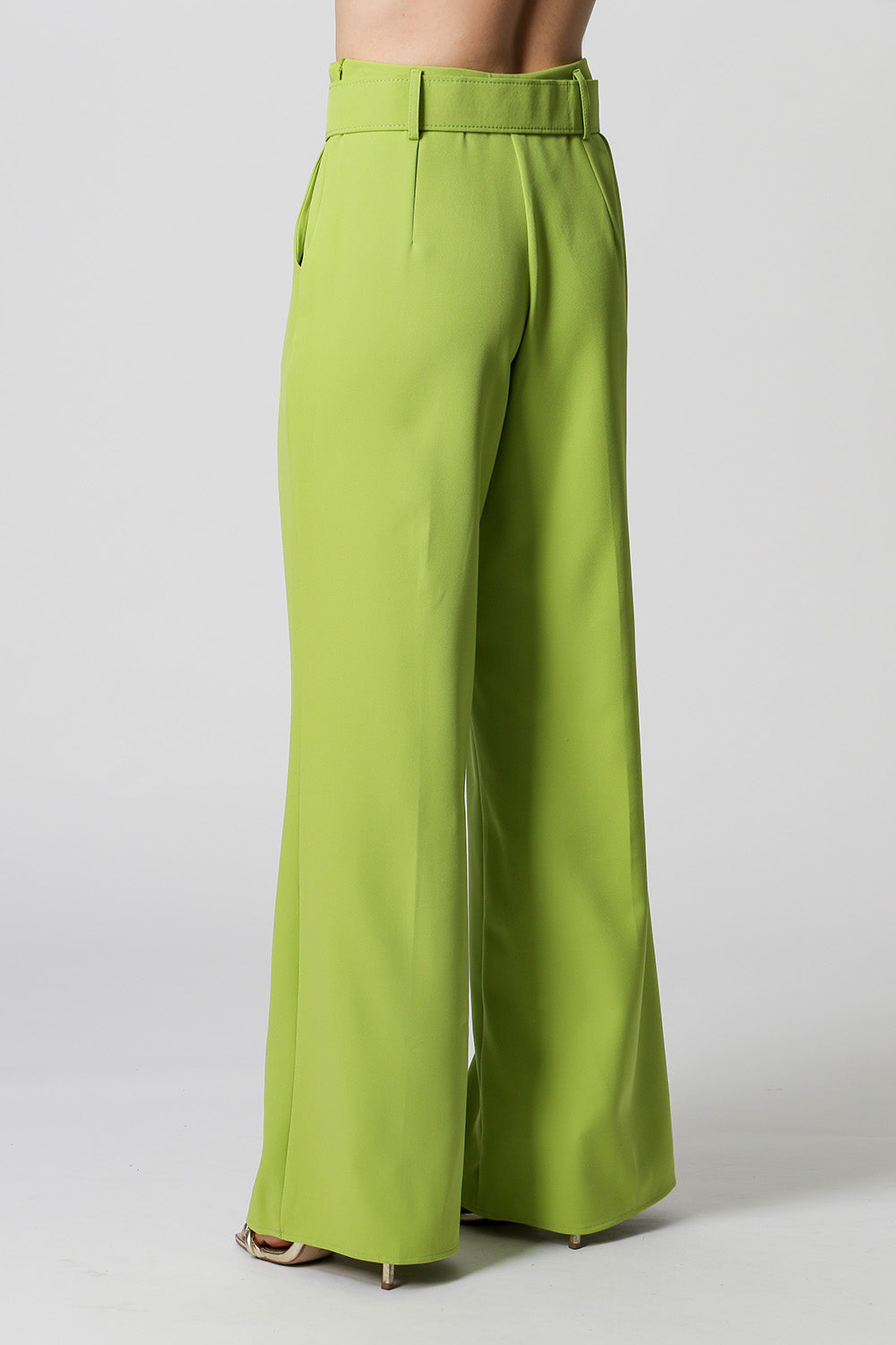 Calça pantalona de cintura alta com cinto e fivela forrados. Linha peça para váras ocasiões, tanto mais trabalho quanto mais casuais.