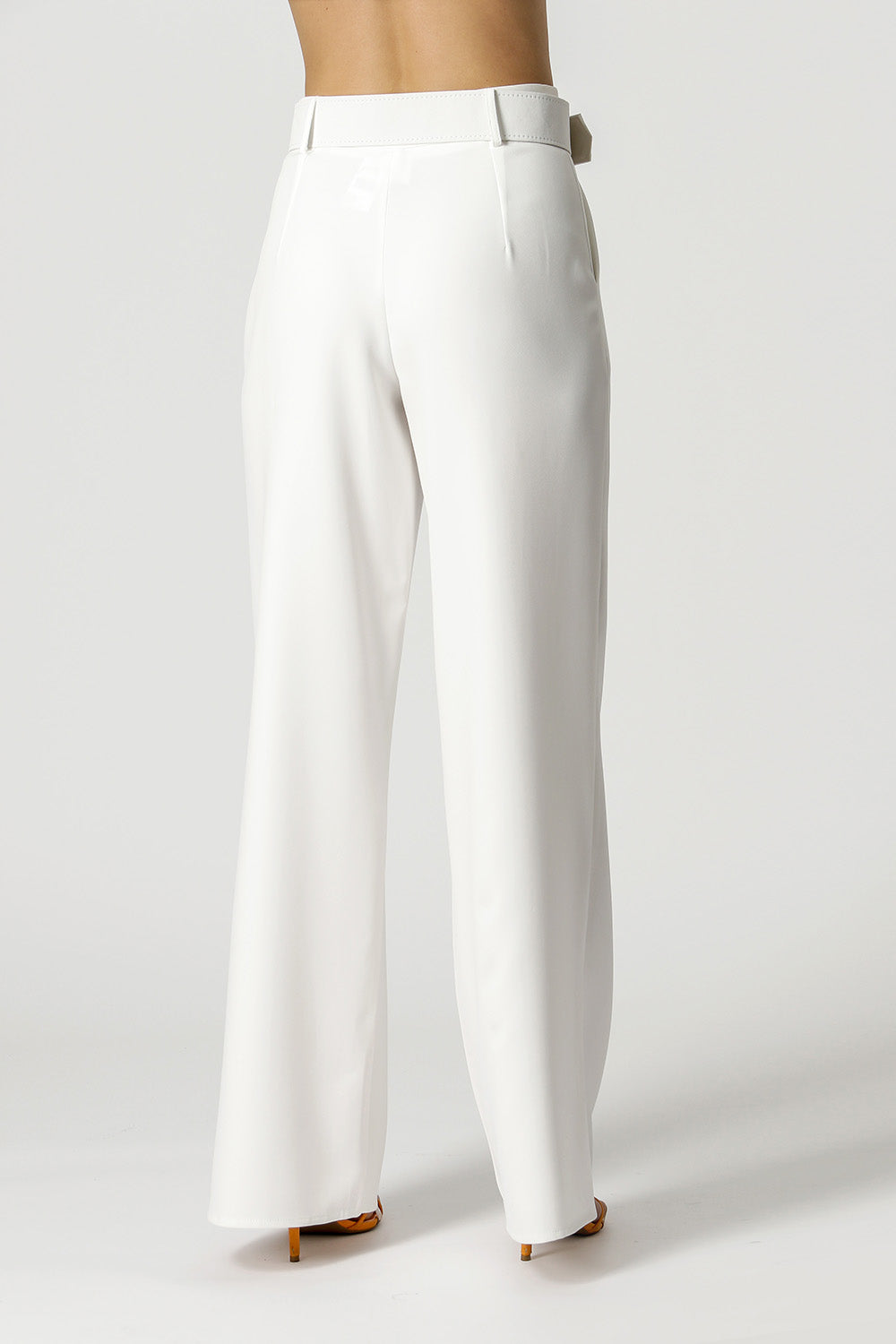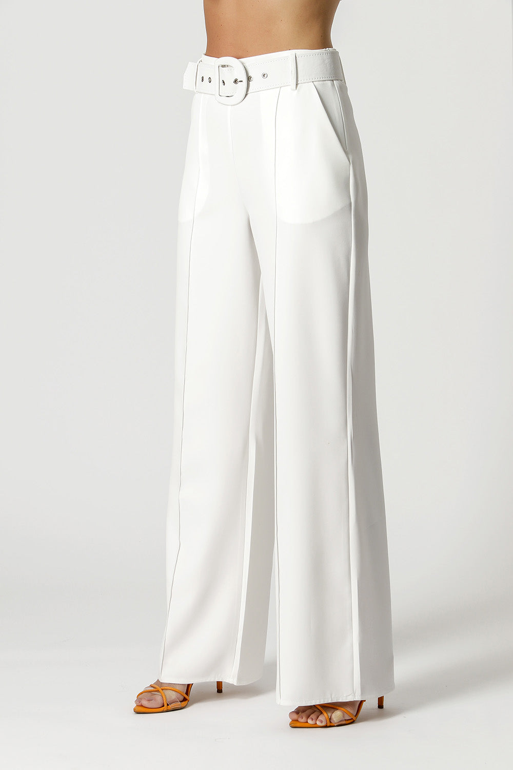Calça pantalona de cintura alta com cinto e fivela forrados. Linha peça para váras ocasiões, tanto mais trabalho quanto mais casuais.