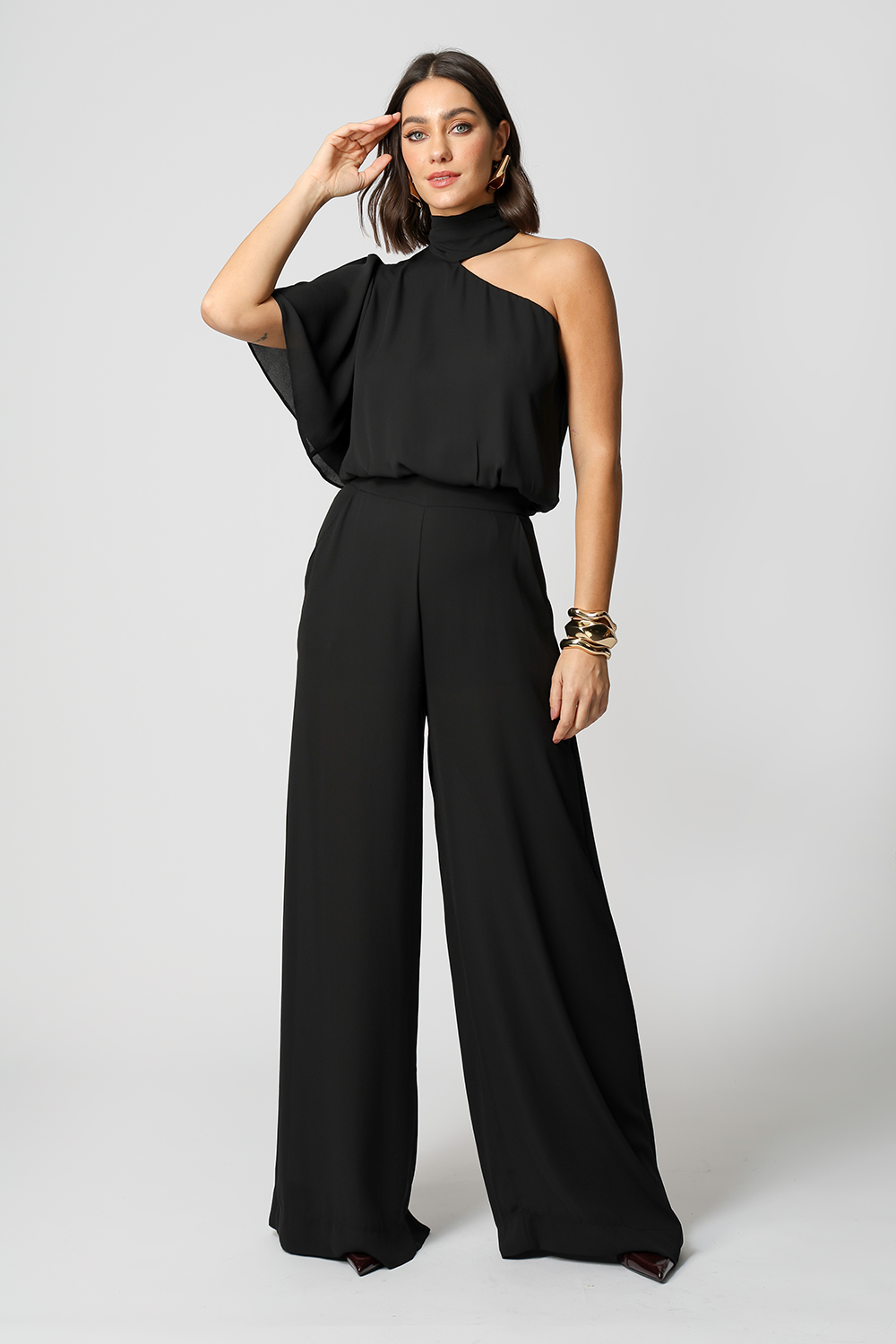 Calça Pantalona, confeccionada em tecido crepe fluido que proporciona um caimento leve e confortável. Esta peça é perfeita para quem busca versatilidade e sofisticação em seu guarda-roupa.