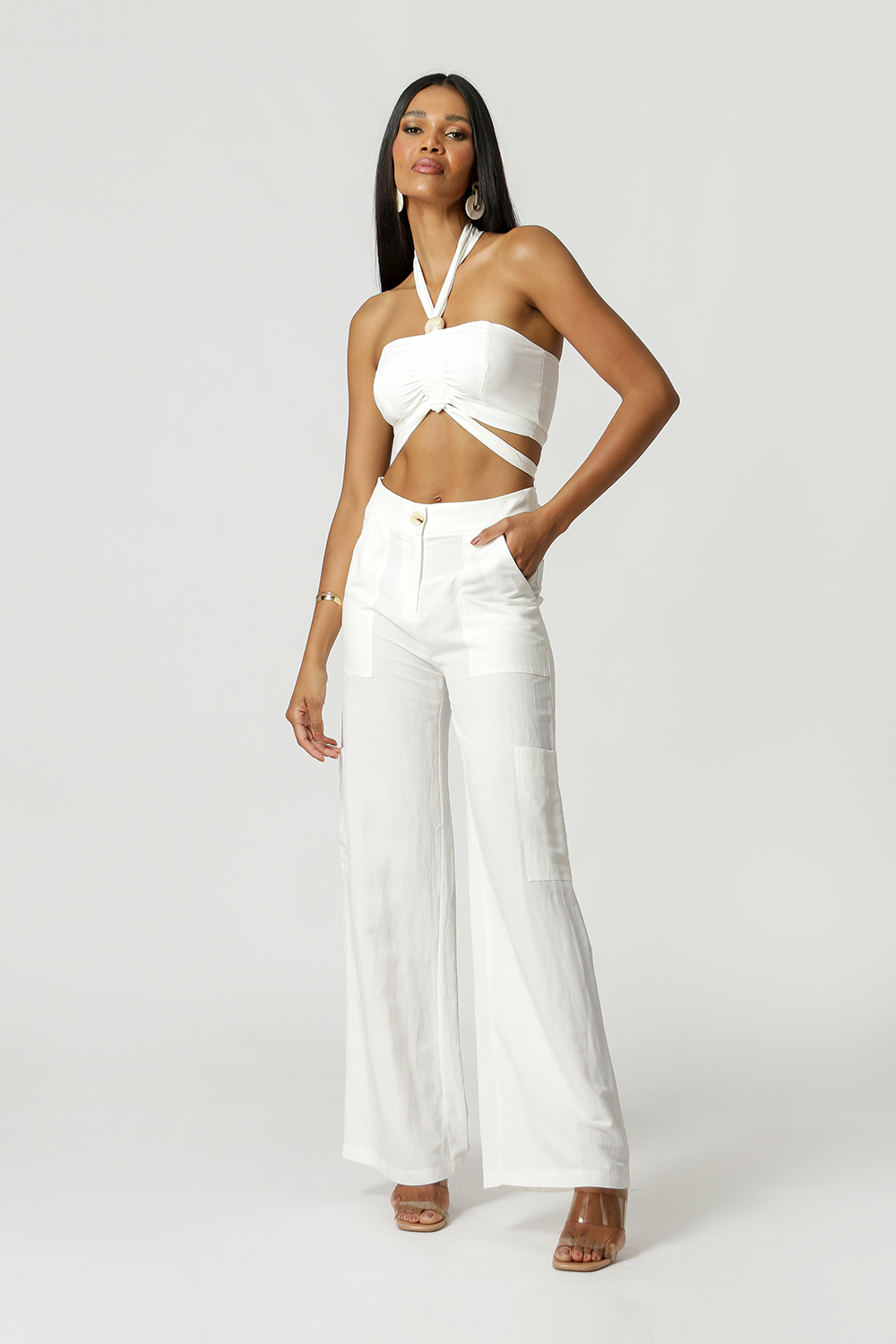• Calça Pantalona Com Bolsos - OFF WHITE