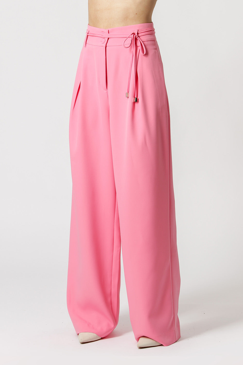 Calça pantalona com cós largo e cinto fino de tira. Possui detalhe de pregas e bolso. Peça feita em alfaiataria, clássica e atemporal, que pode ser coordenada com todo o seu guarda-roupa.