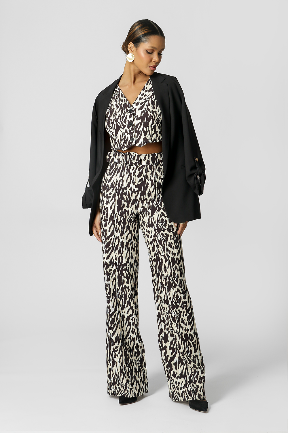 Calça pantalona de cintura alta com cinto e fivela forrados. Peça com estilo delicado que a gente adora, perfeita para um look mais elegante.