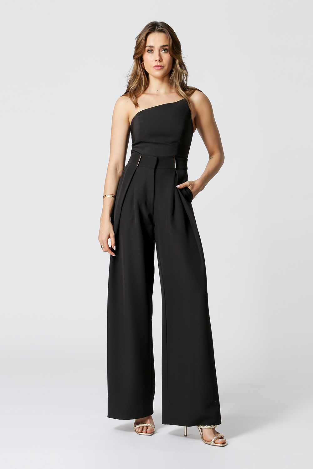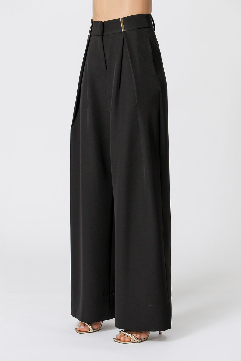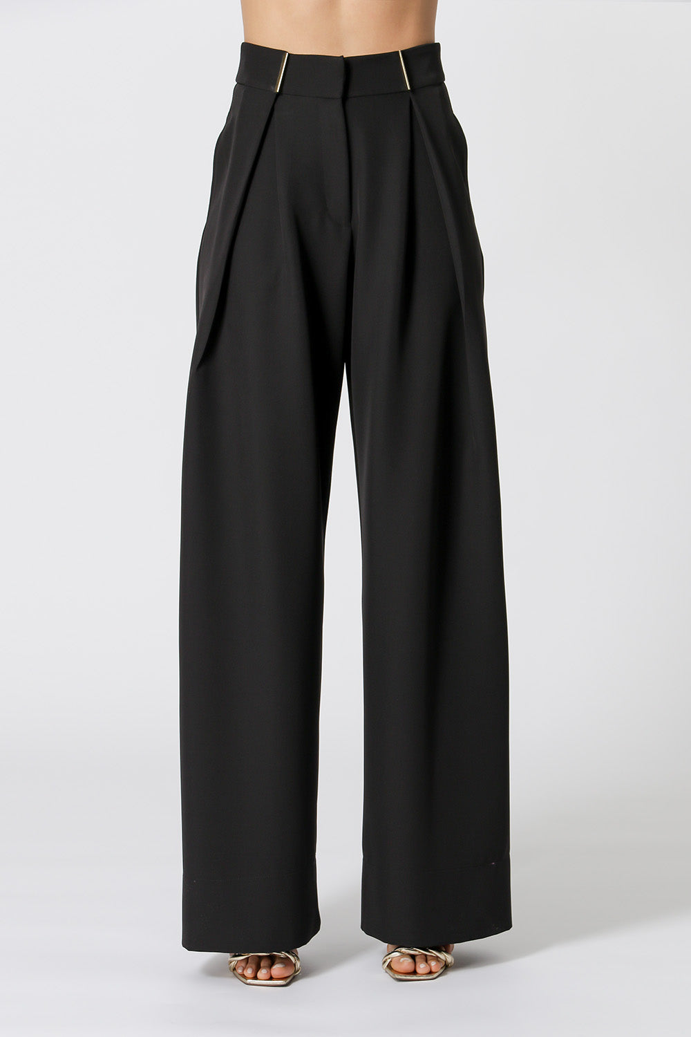• Calça Pantalona Com Detalhe de Metal - PRETO
