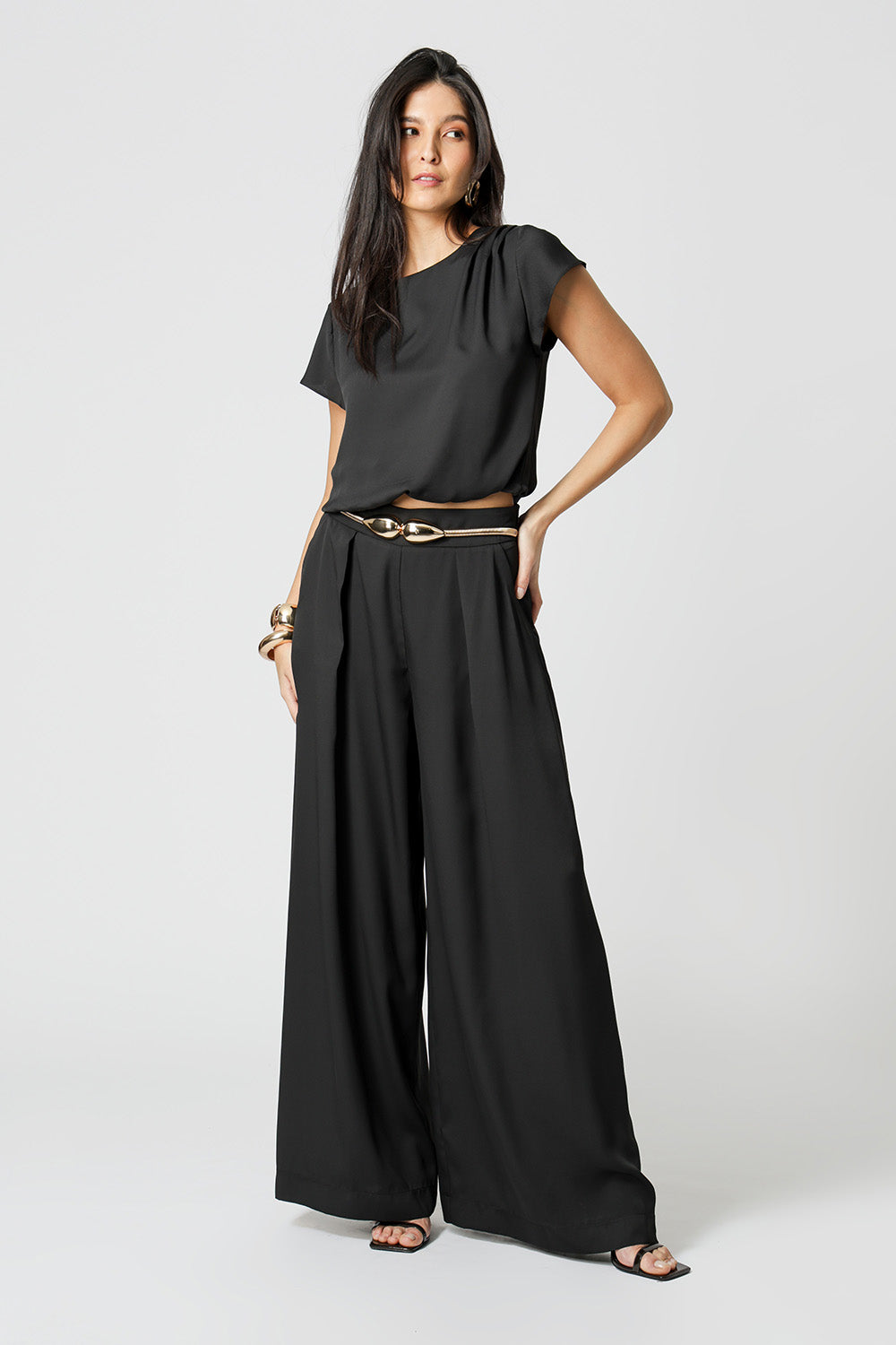 Com caimento leve e elegante, a calça pantalona em crepe Segall apresenta prega frontal que cria volume sutil na barra, trazendo movimento e sofisticação ao look.