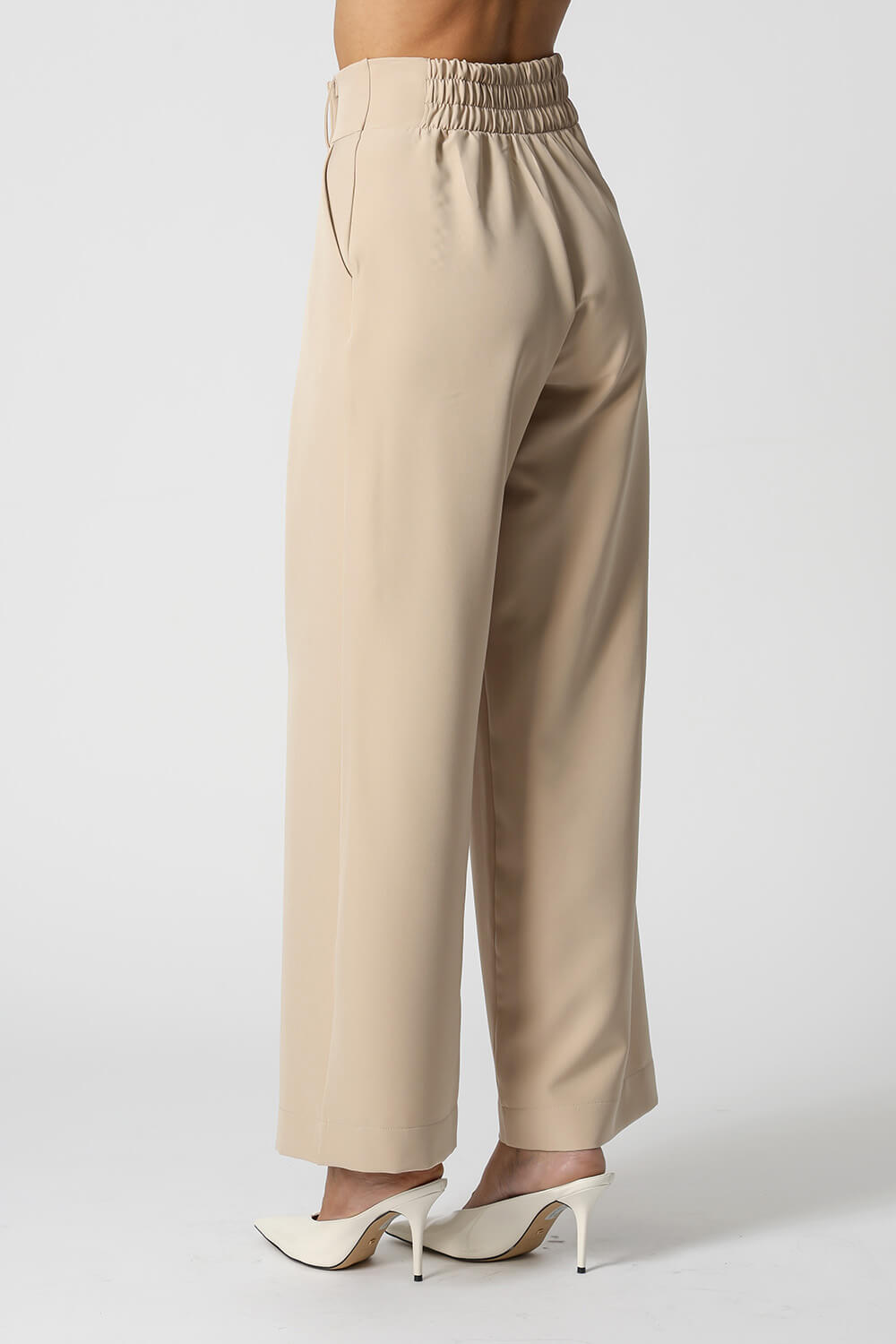 Calça pantalona com detalhe de elástico no cós. Uma peça feita em tecido alfaiataria, peça confortável e elegante para criar varios looks.