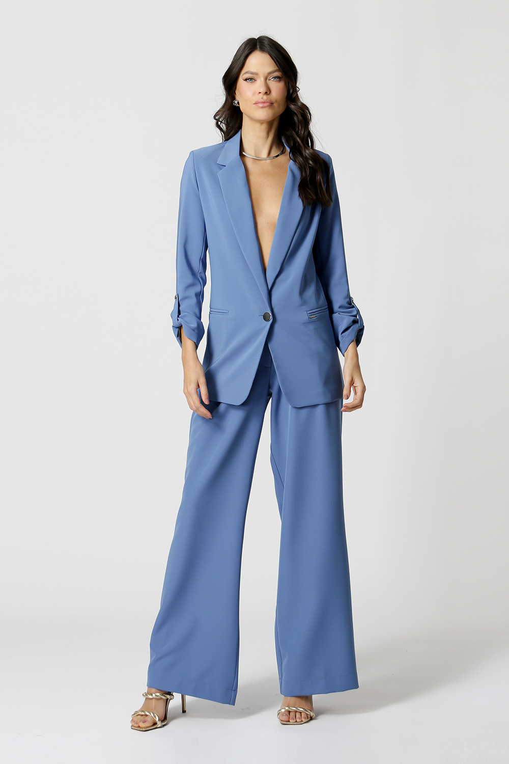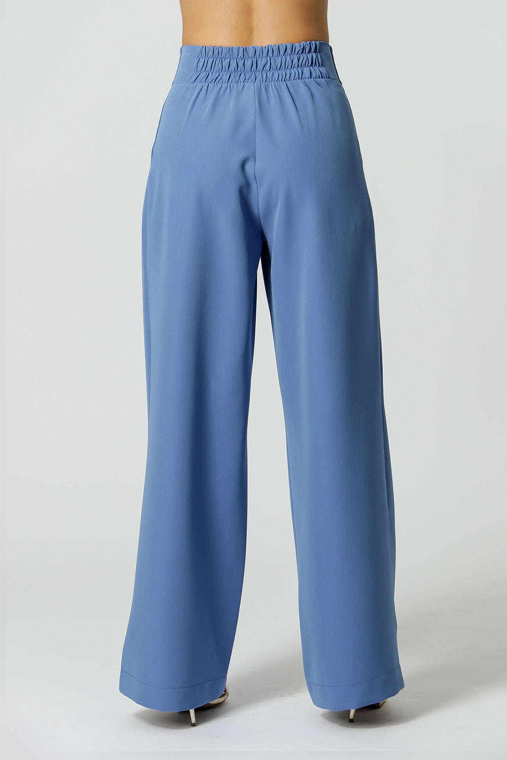 Calça pantalona com detalhe de elástico no cós. Uma peça feita em tecido alfaiataria, peça confortável e elegante para criar varios looks.
