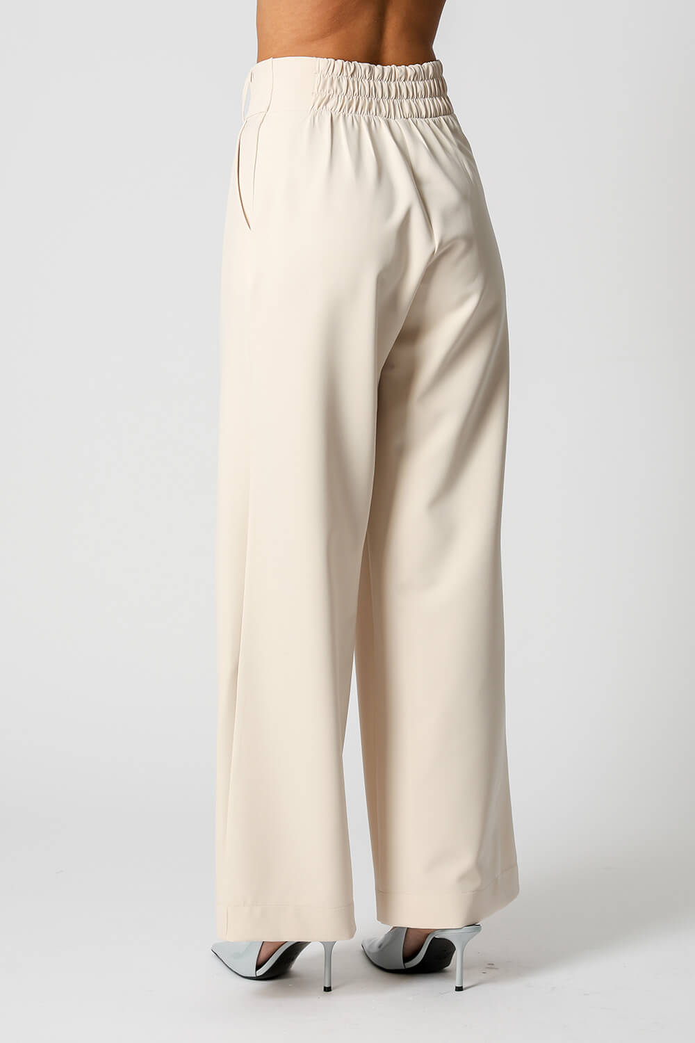 Calça pantalona com detalhe de elástico no cós. Uma peça feita em tecido alfaiataria, peça confortável e elegante para criar varios looks.