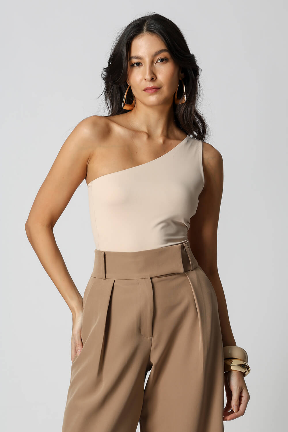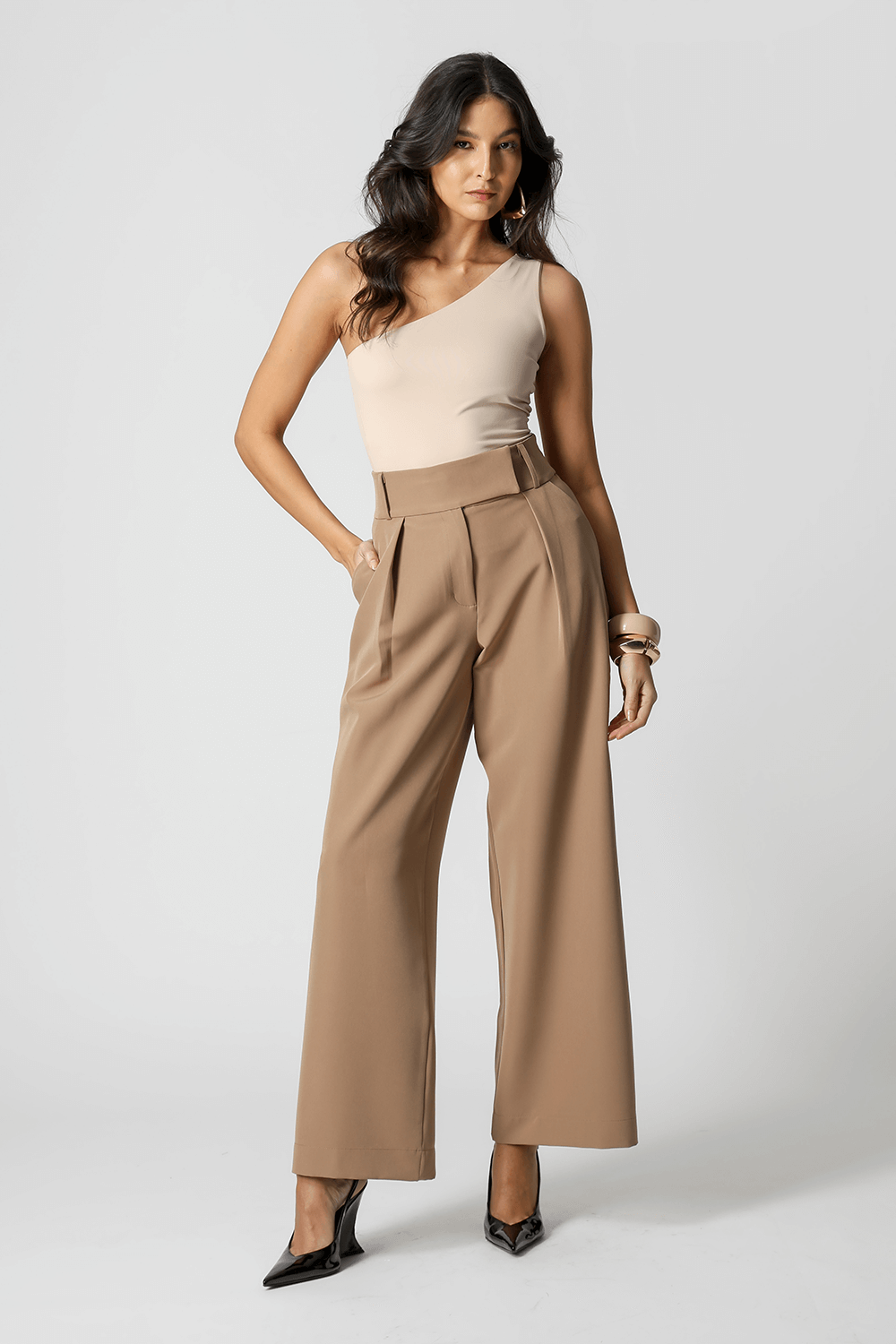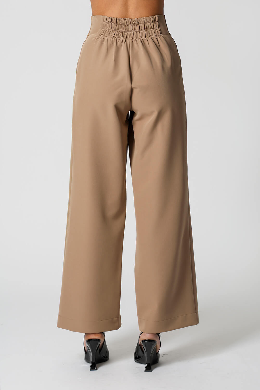 Calça pantalona com detalhe de elástico no cós. Uma peça feita em tecido alfaiataria, peça confortável e elegante para criar varios looks.