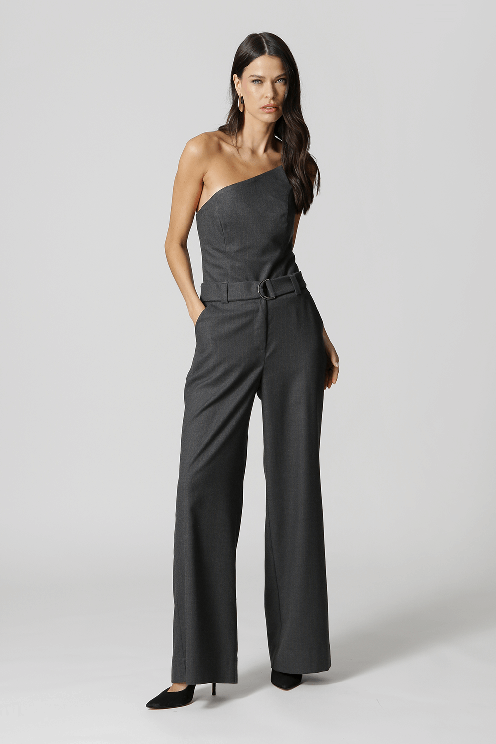 • Calça Pantalona Em Alfaiataria Risca De Giz - CHUMBO 90145
