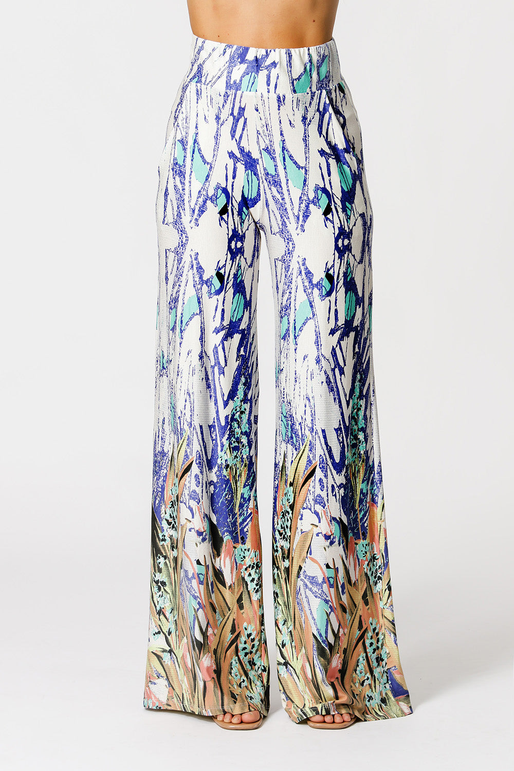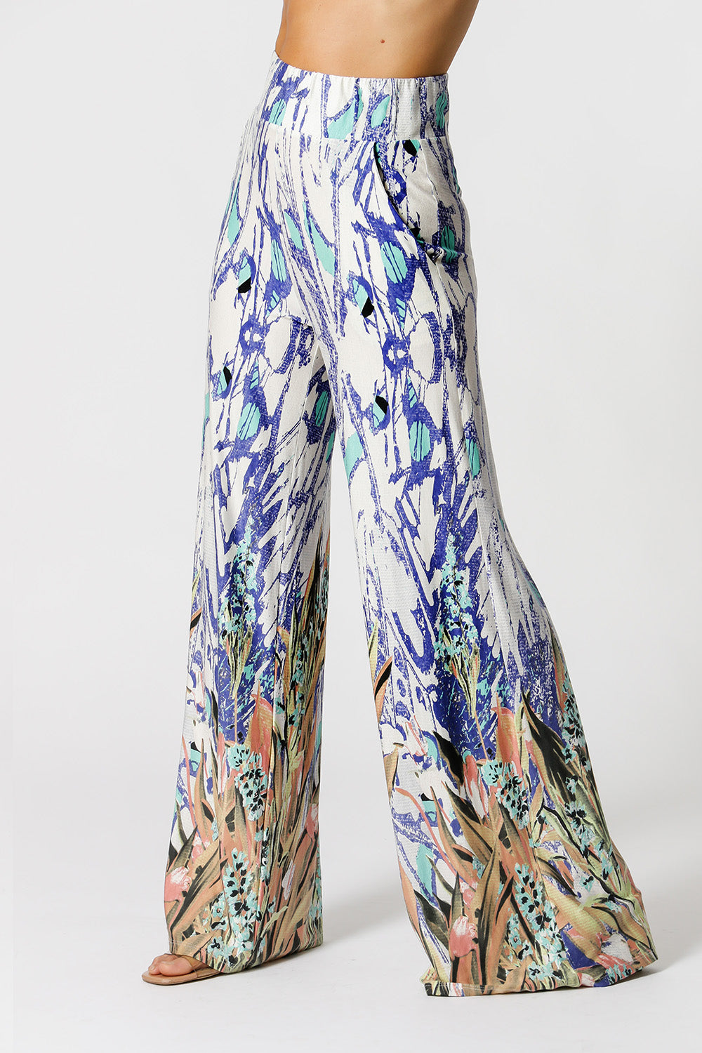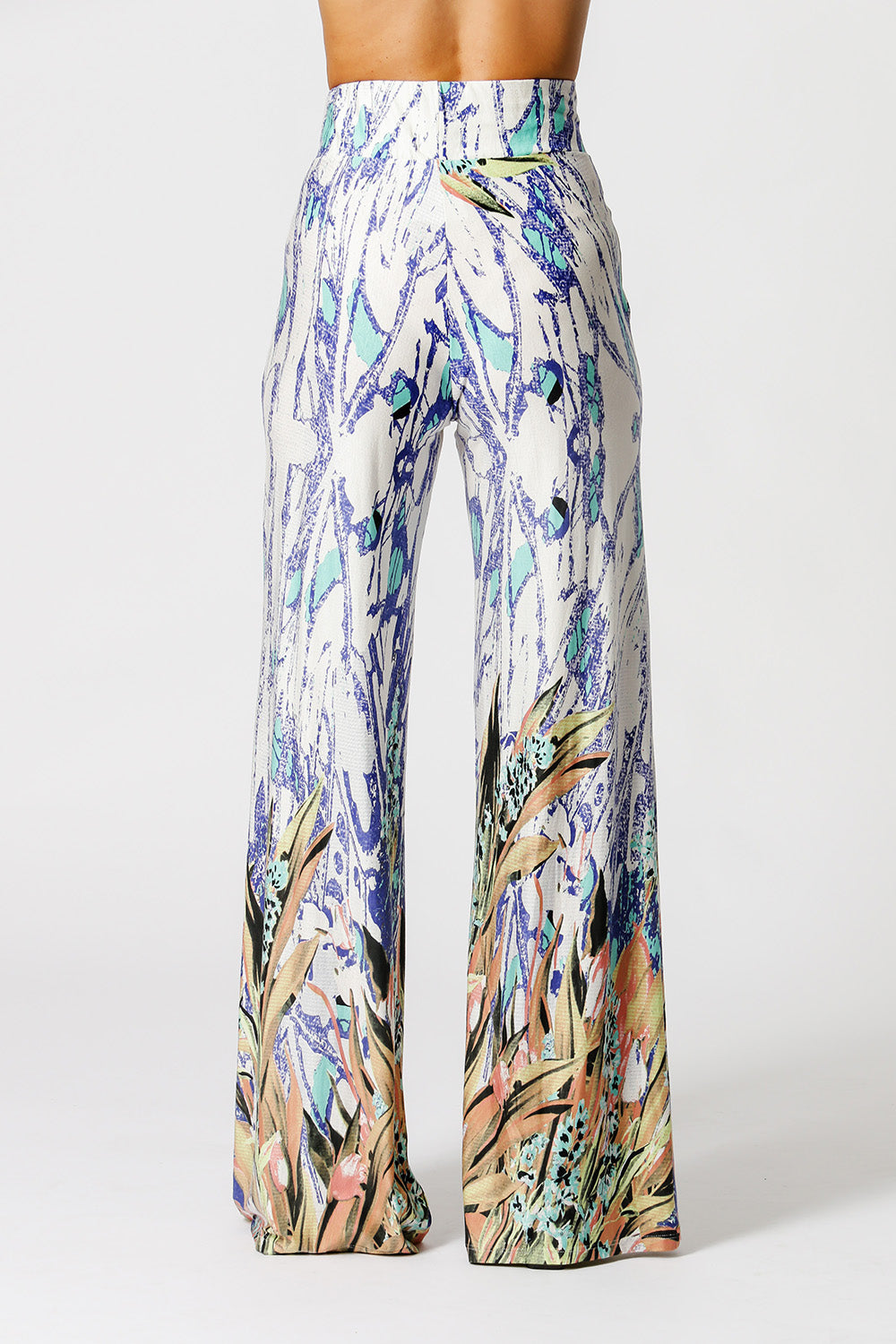 Calça pantalona com bolso na frente. Modelo confeccionado em tecido malha estampado. Um modelo com shape soltinho e confortável para mood casual.