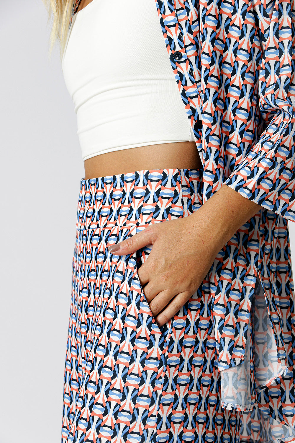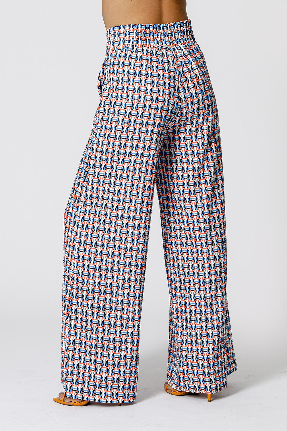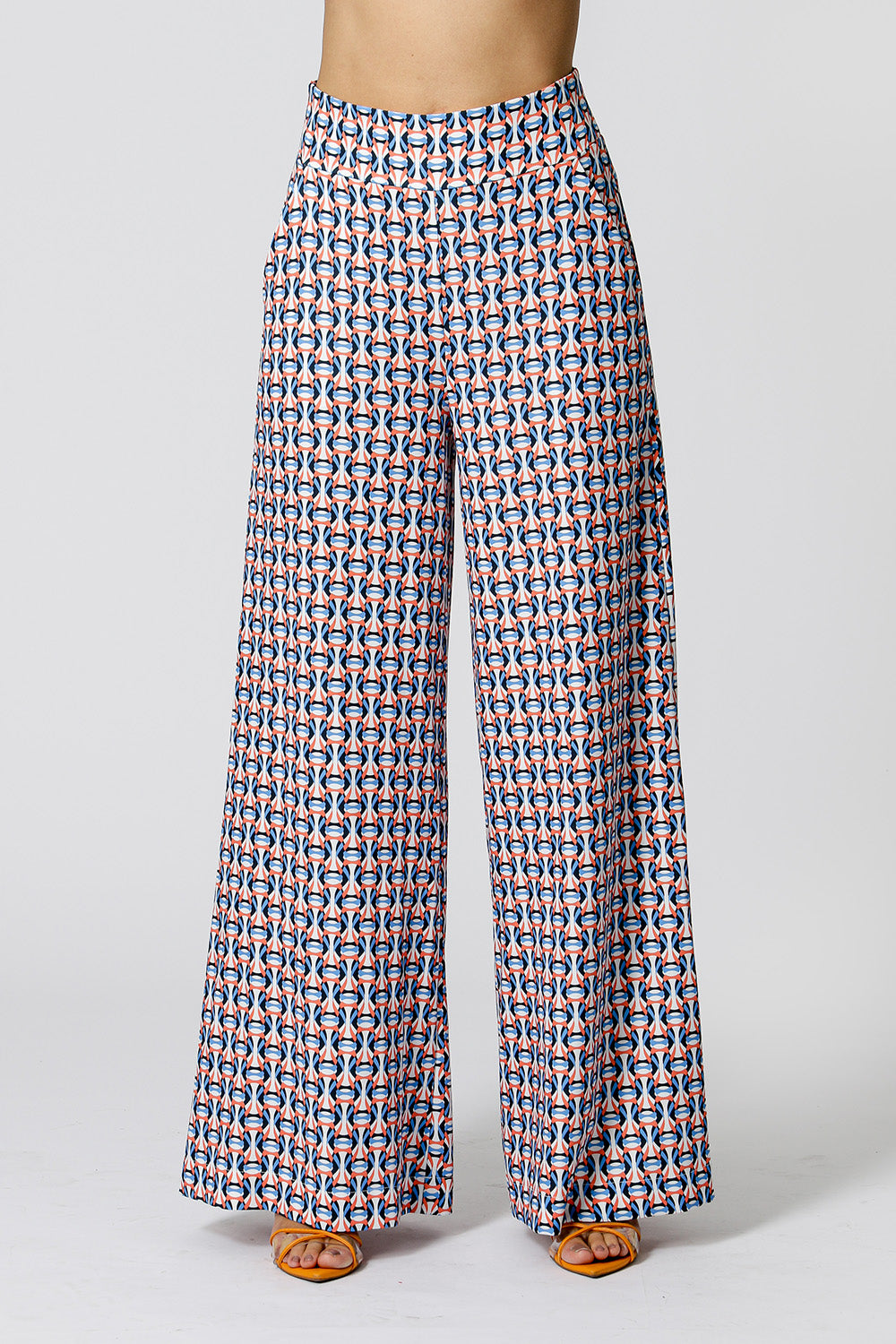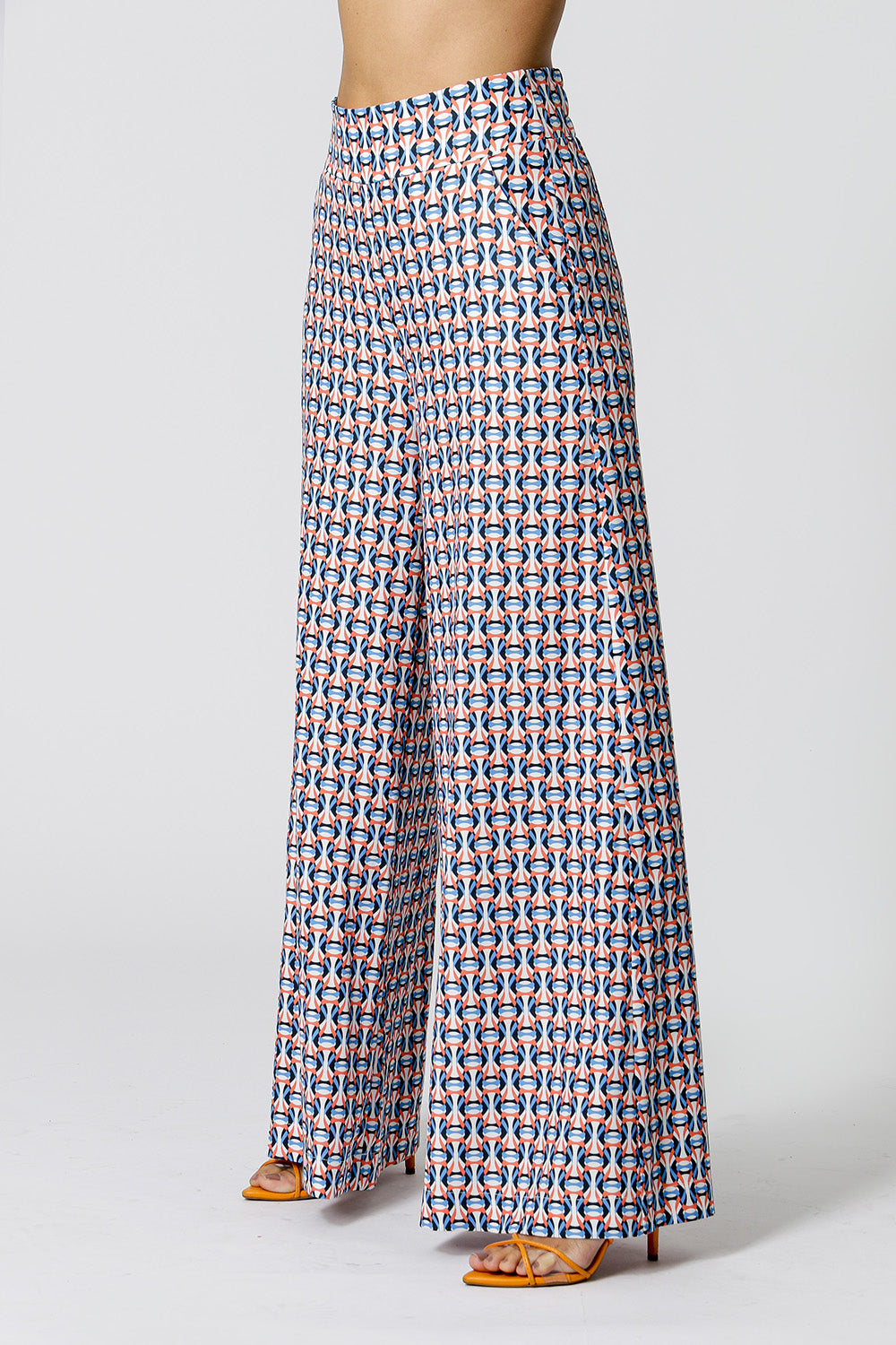 Calça pantalona feita em alfaitaria creponada estampada. Possui bolso faca e caimento fluído. Uma peça clássica para diversos looks versáteis.
