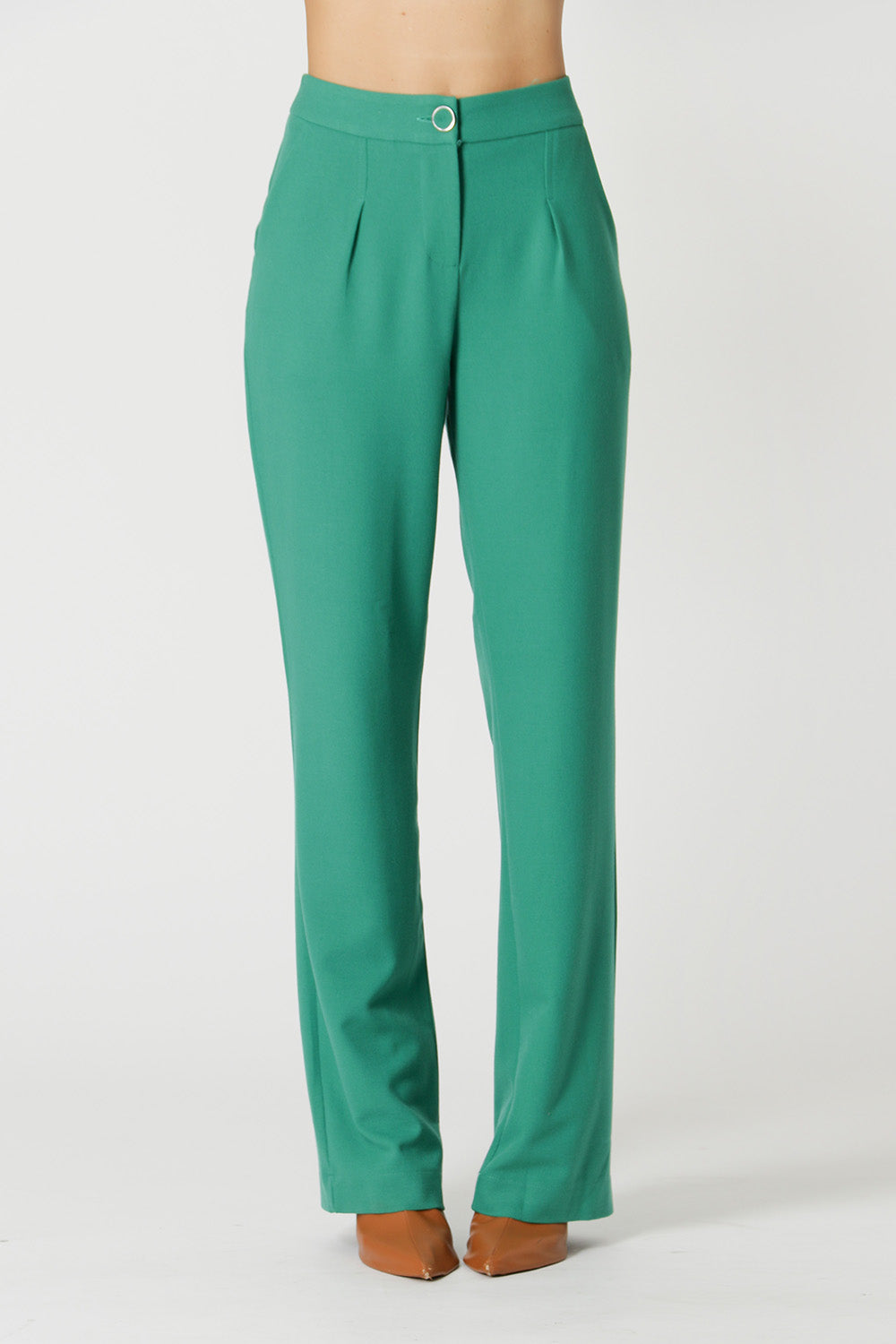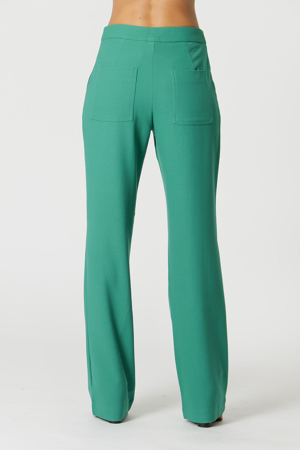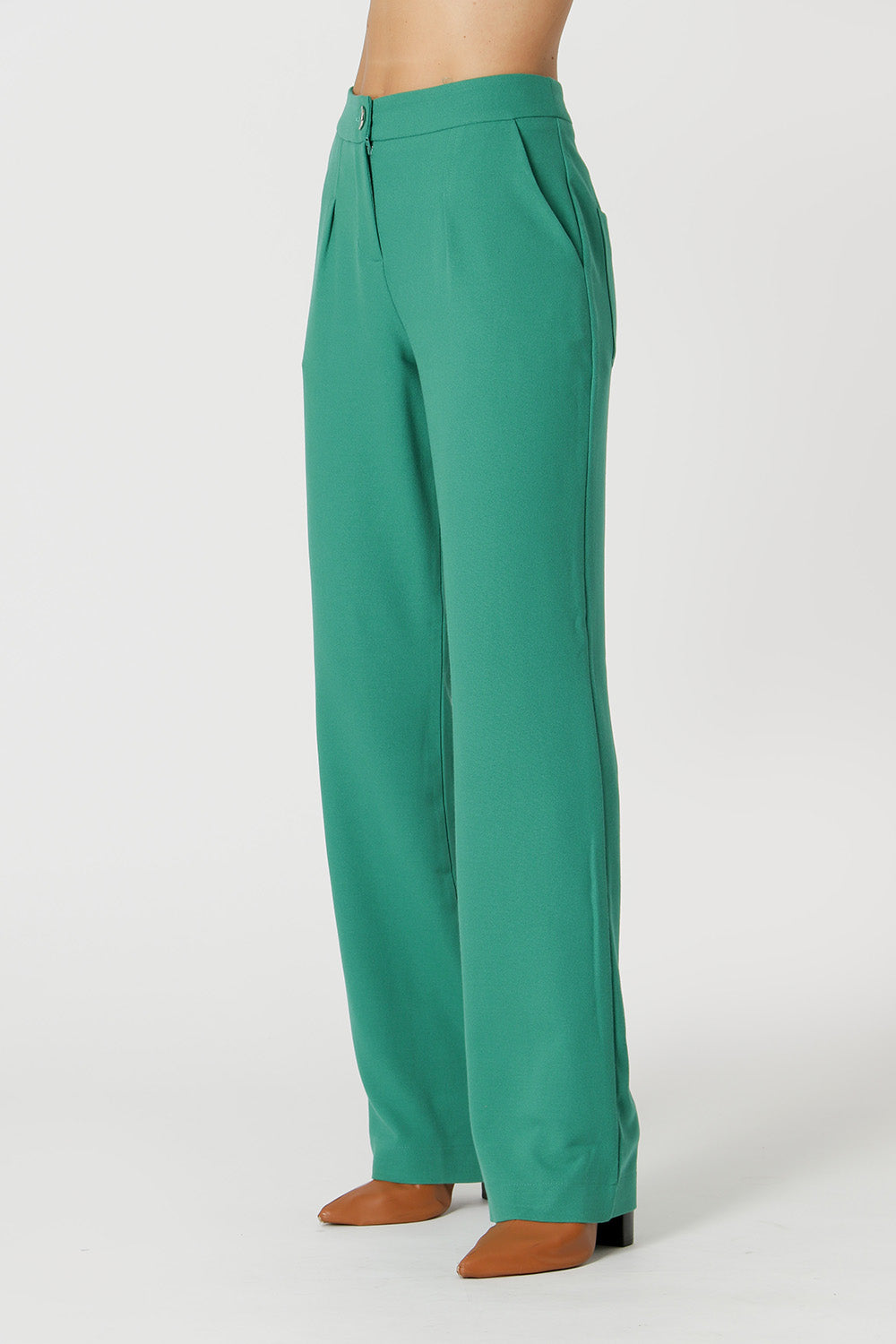 Calça pantalona com bolso e detalhe de pence na frente. Uma peça confeccionada com caimento leve e textura. Modelo elegante e confortável para compor mood work.