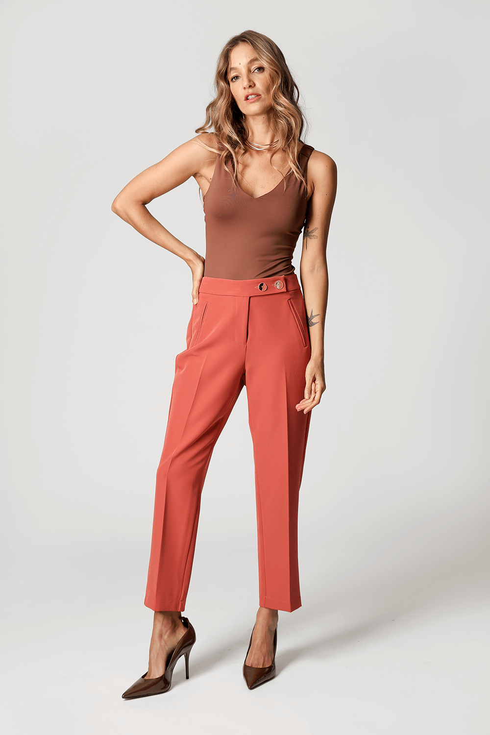 Calça reta com detalhe de bolso frontal. Confeccionada em tecido alfaiataria uma peça perfeita para compor looks work com elegância no seu dia-a-dia.