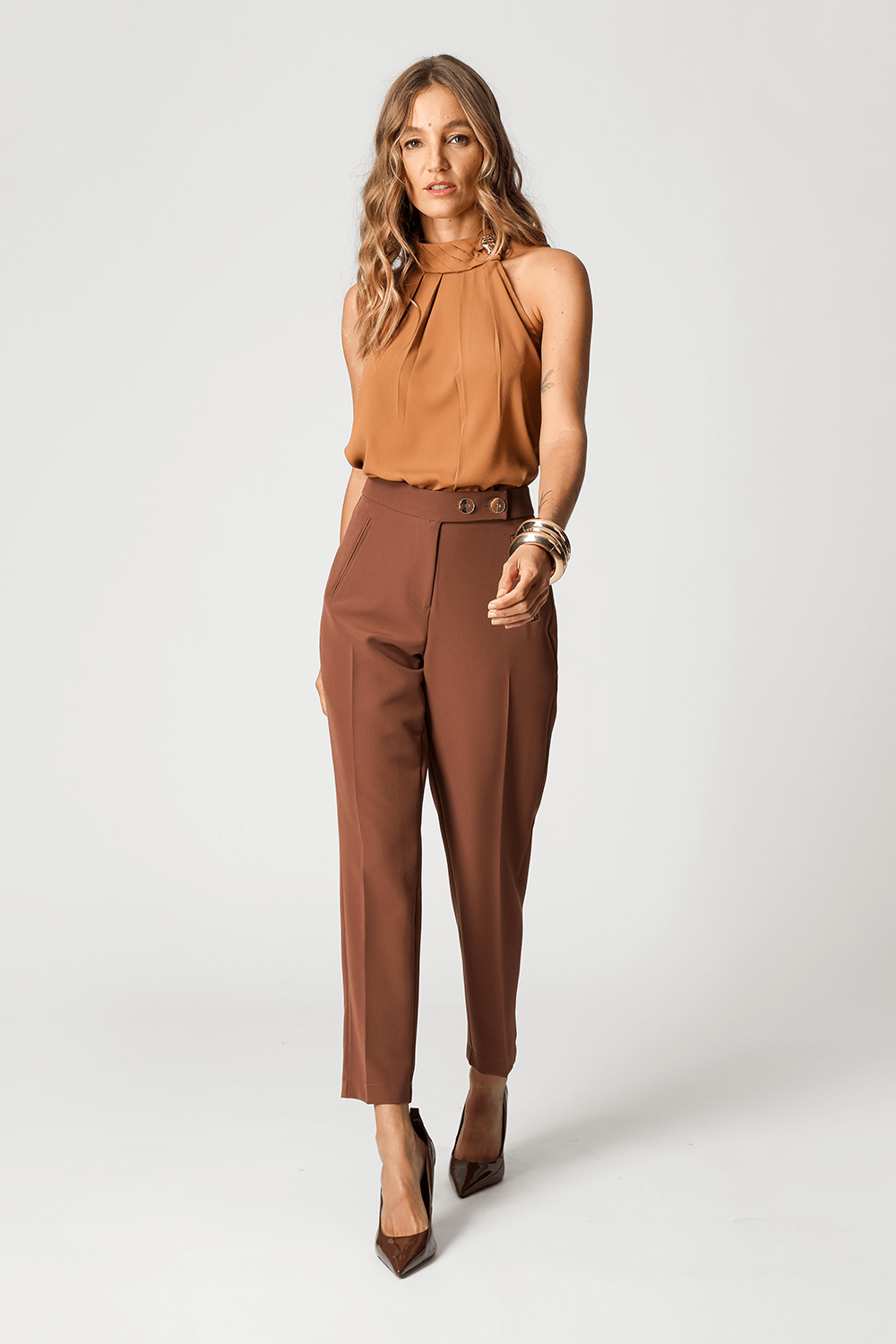 Calça reta com detalhe de bolso frontal. Confeccionada em tecido alfaiataria uma peça perfeita para compor looks work com elegância no seu dia-a-dia.