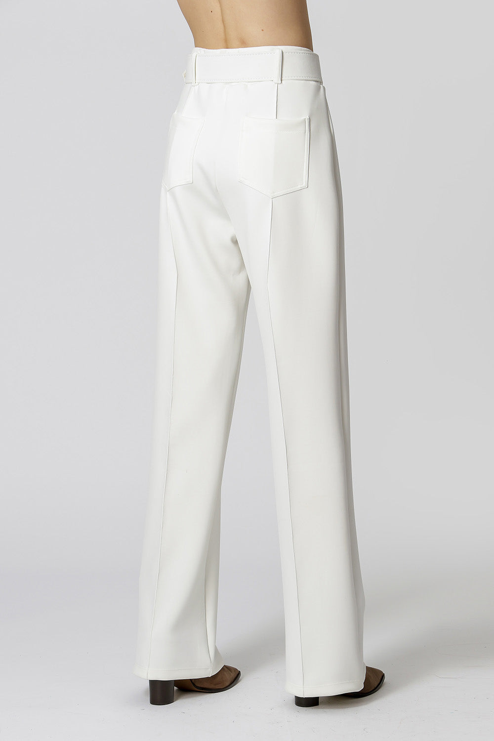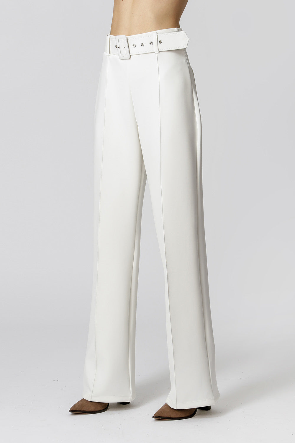 Calça com shape reto e com detalhe de nervura. Possui cinto com fivela forrada. Peça feita em neoprene ideal na composição de um look casual chique.