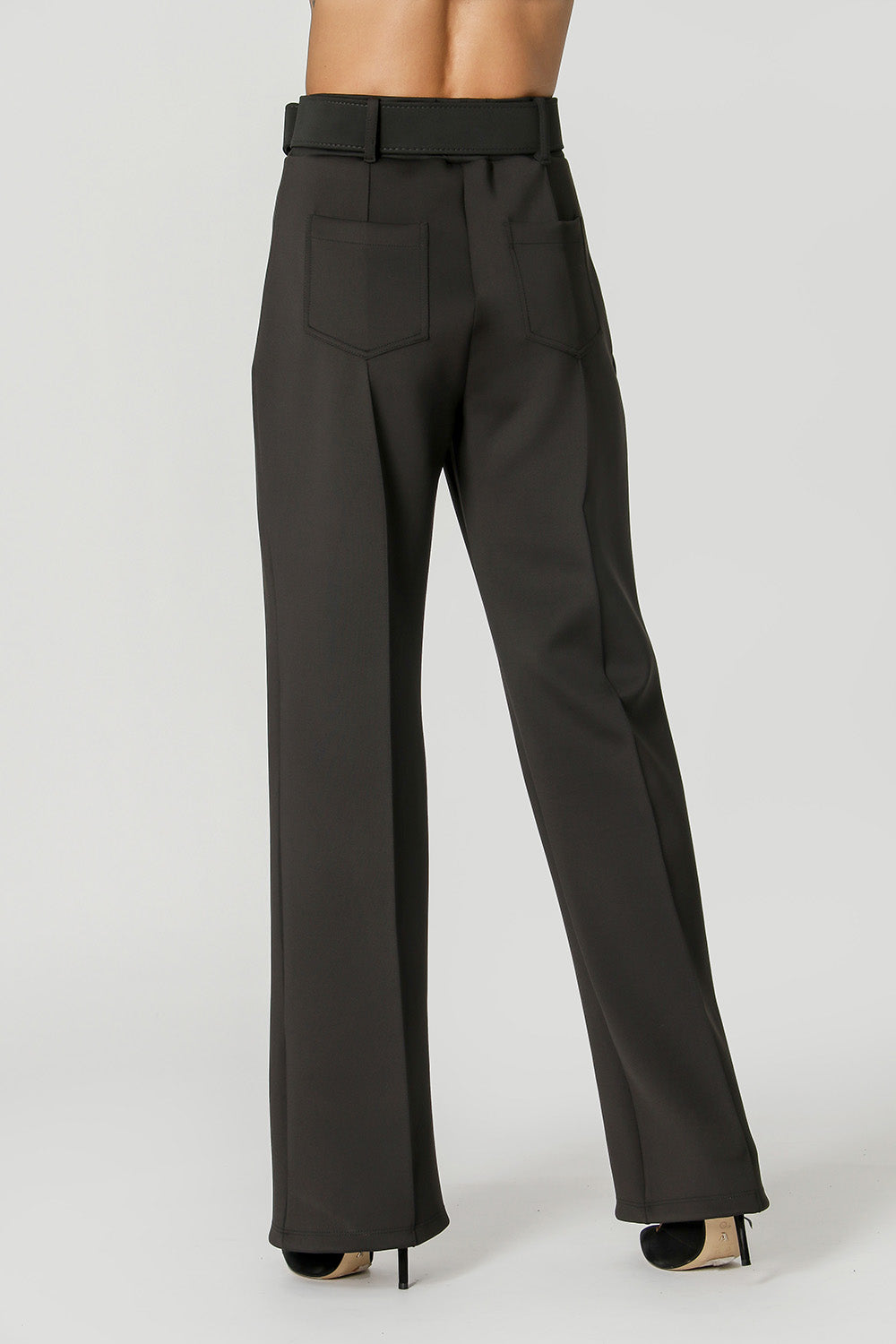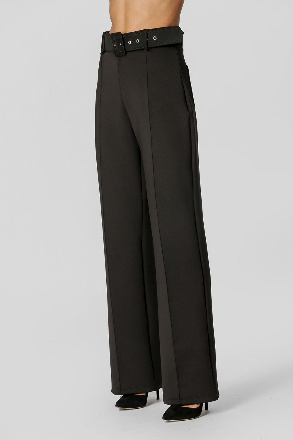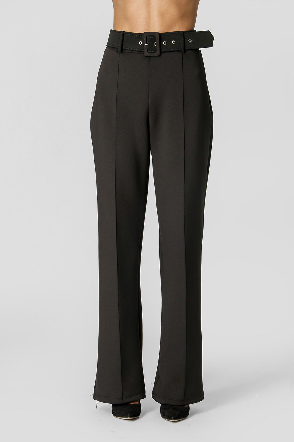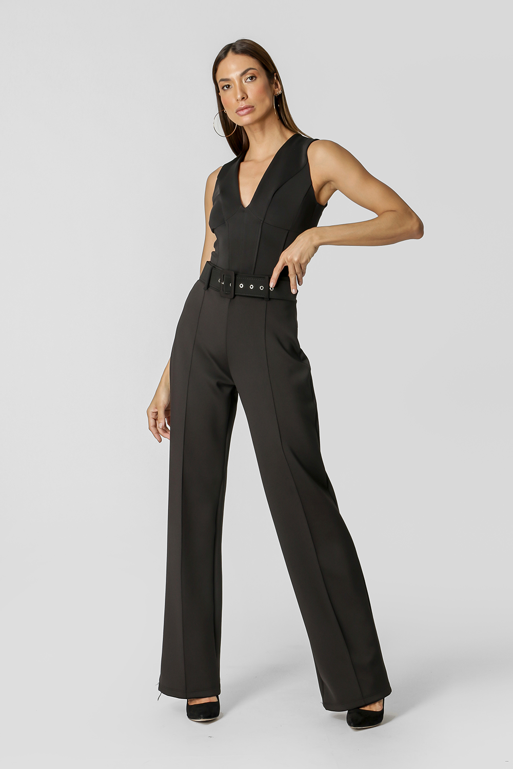 Calça com shape reto e com detalhe de nervura. Possui cinto com fivela forrada. Peça feita em neoprene ideal na composição de um look casual chique.