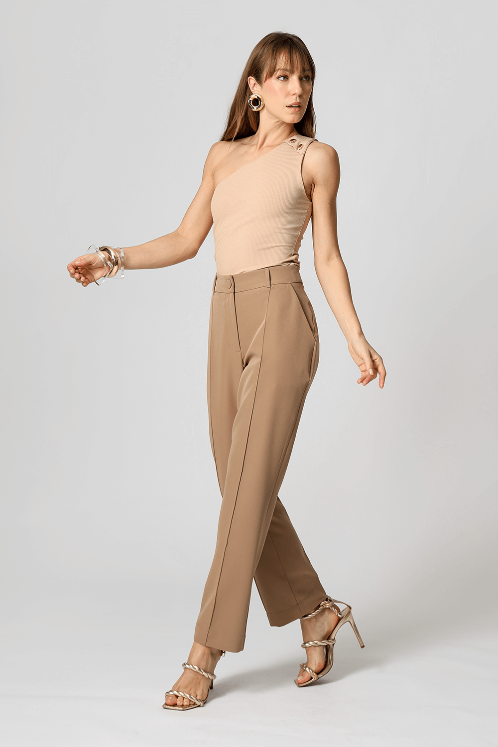 A calça reta com recorte frontal em alfaiataria é uma peça clássica e sofisticada, perfeita para compor um look work.
