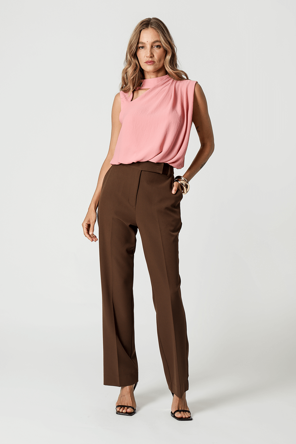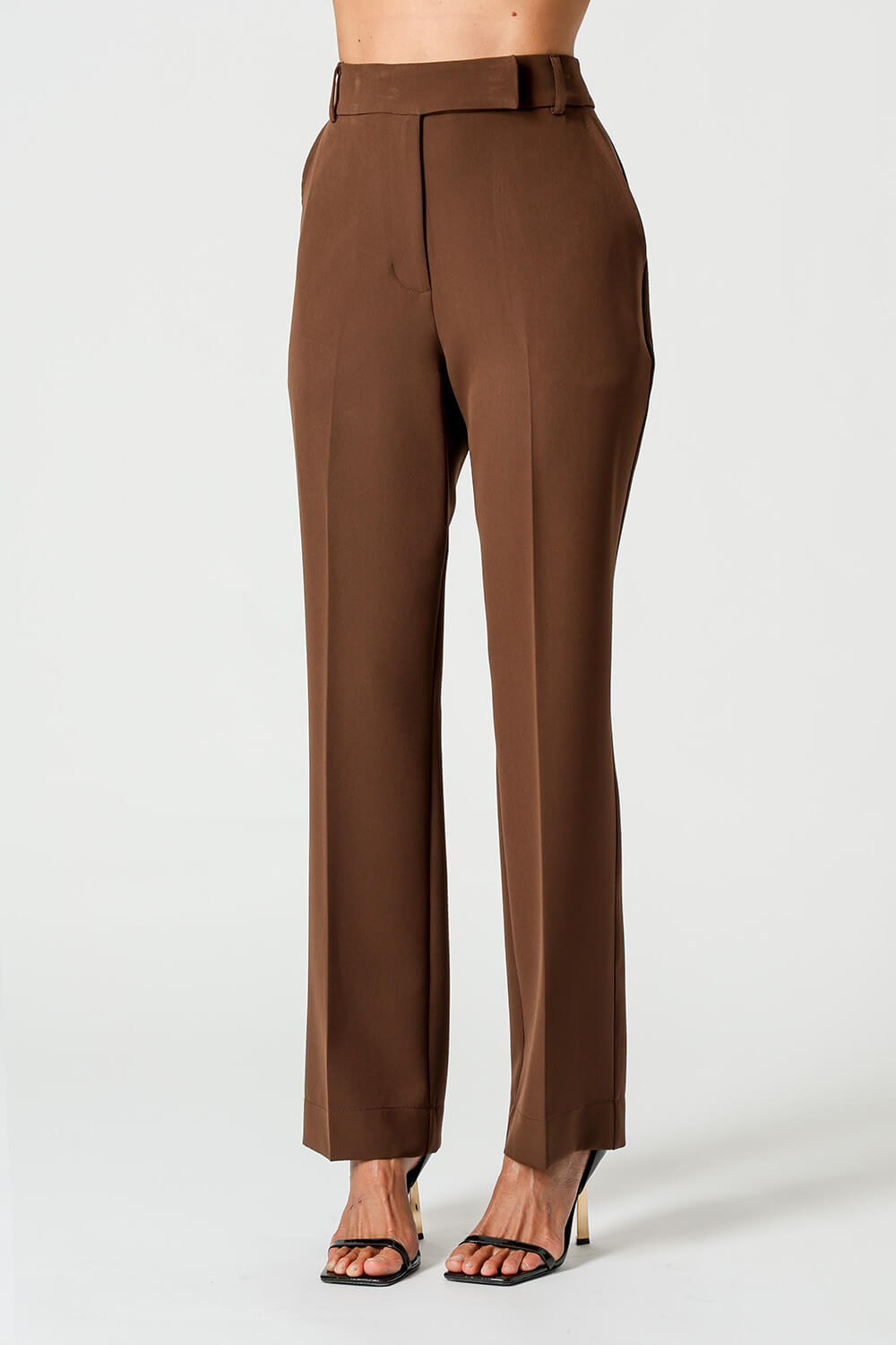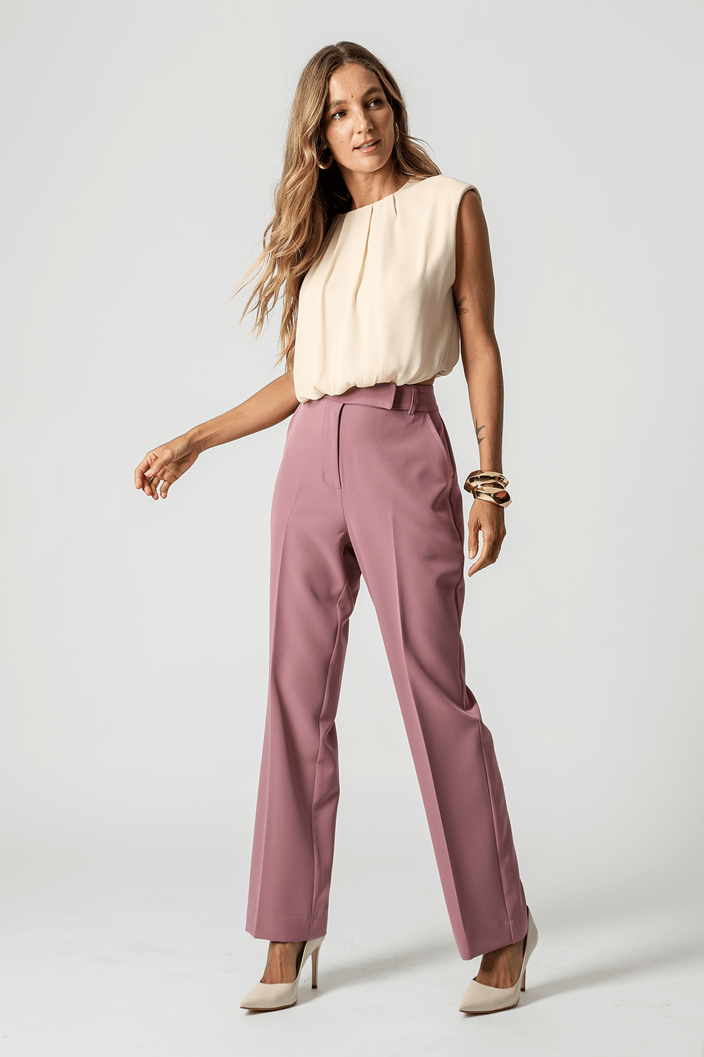 A calça reta com cós minimalista feita em alfaiataria é uma peça sofisticada, versátil e atemporal, ideal para quem busca conforto e elegância, ideal para looks work.