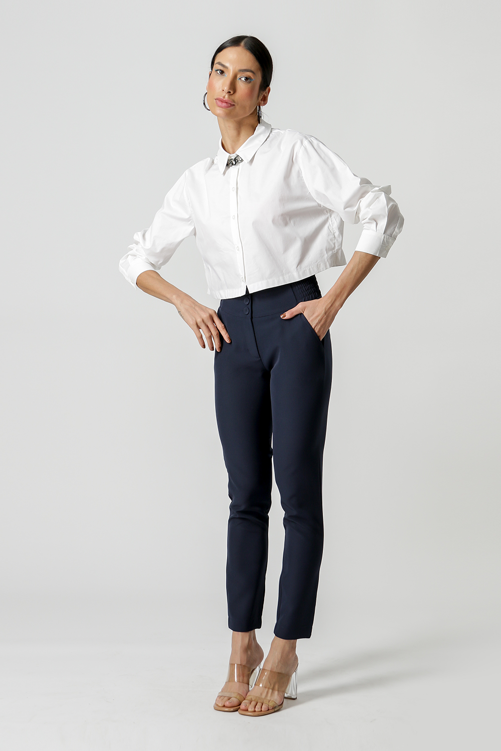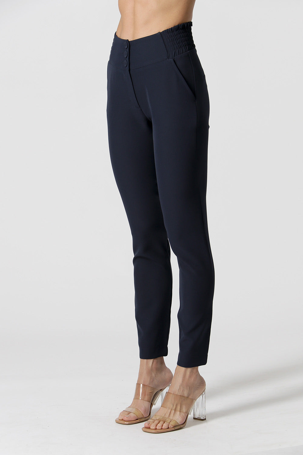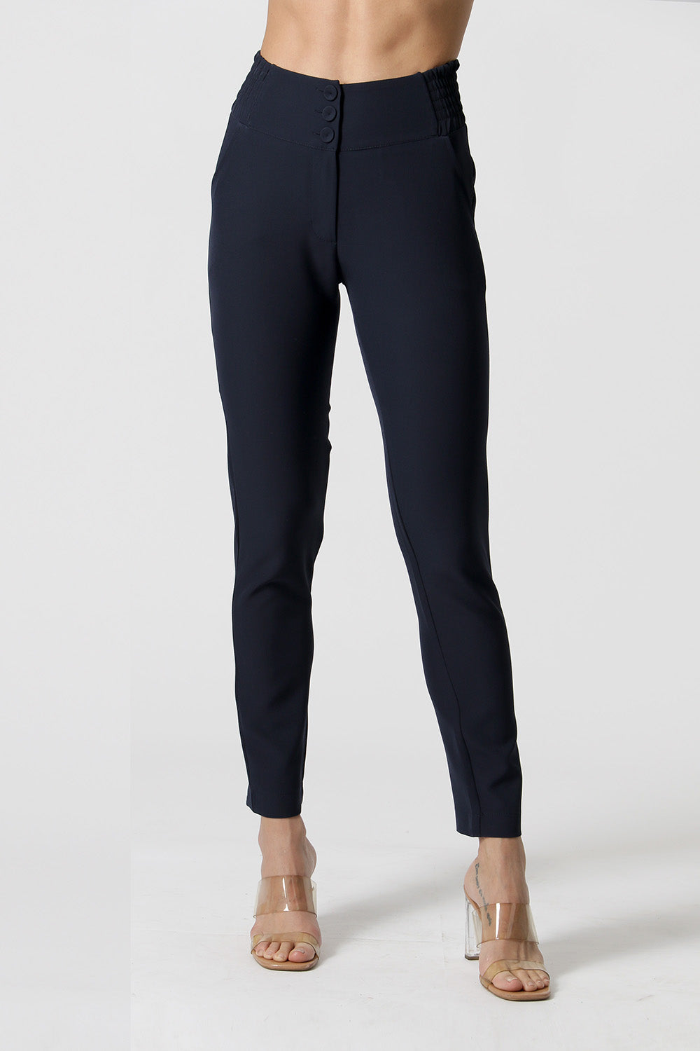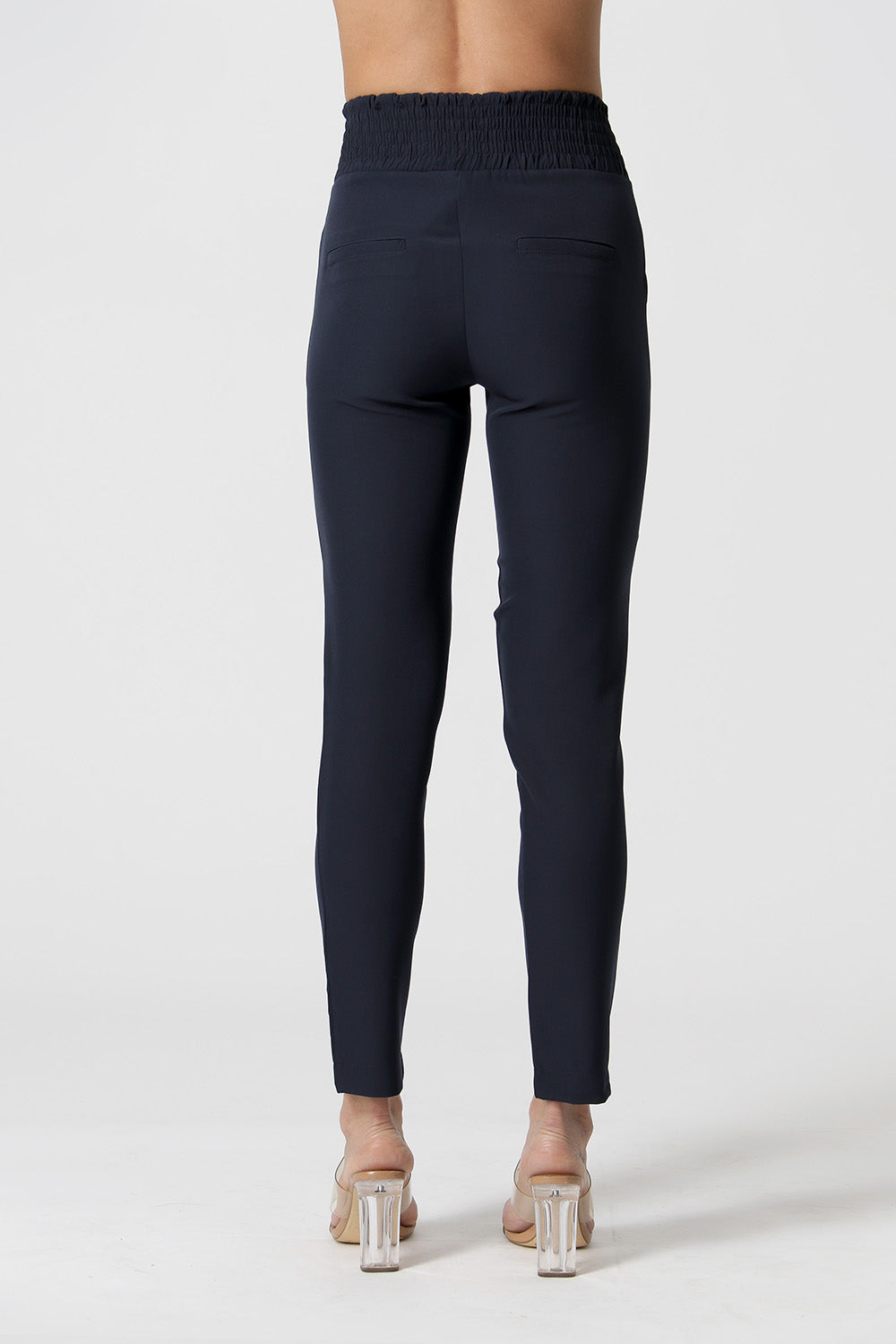 Calça Skinny com elástico no cós e bolso traseiro alfaiataria. Uma peça confeccionada em tecido alfaiataria com shape Skinny caimento justo que super valoriza a silhueta feminina.