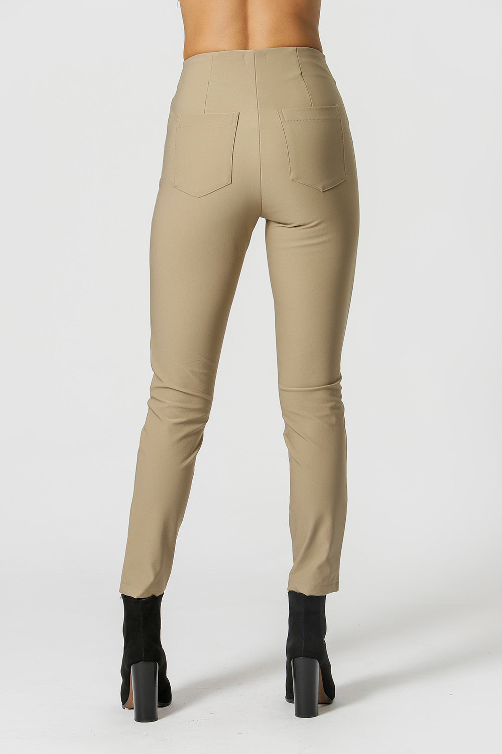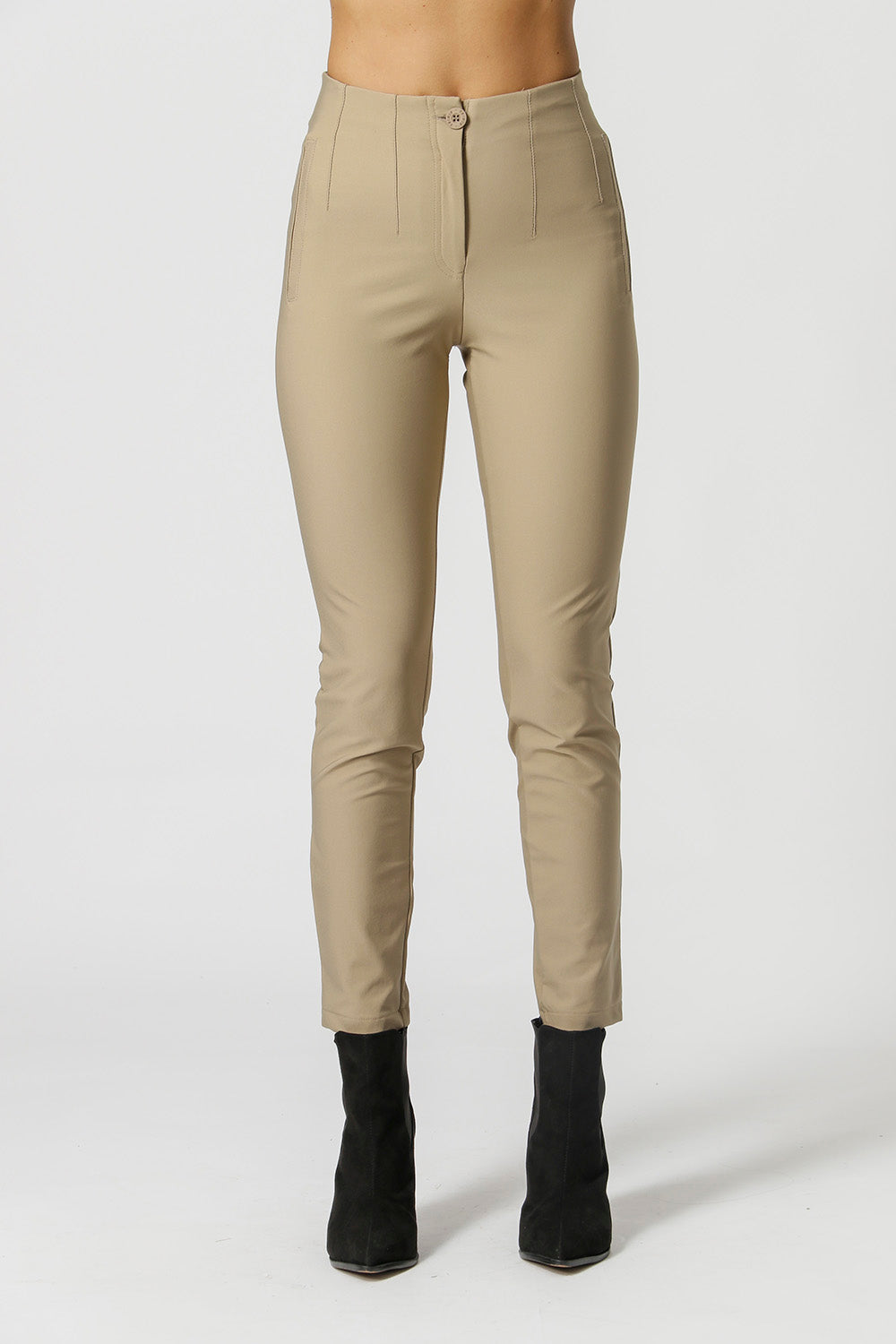 Calça de modelagem skinny com pences pespontadas, bolsos frontais e traseiros. Uma peça que compõe looks de trabalhos e casuais.