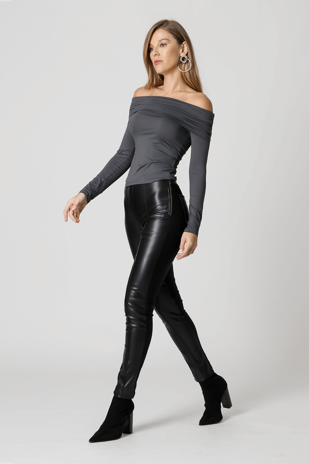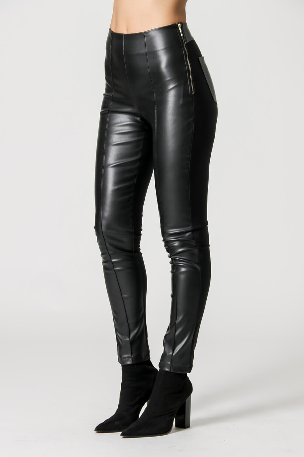 Calça Skinny Com Mix de tecidos. Peça diferencial para arrasar em difereços looks.
