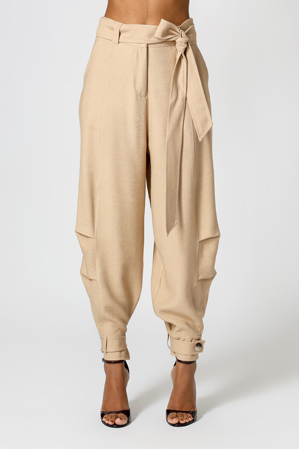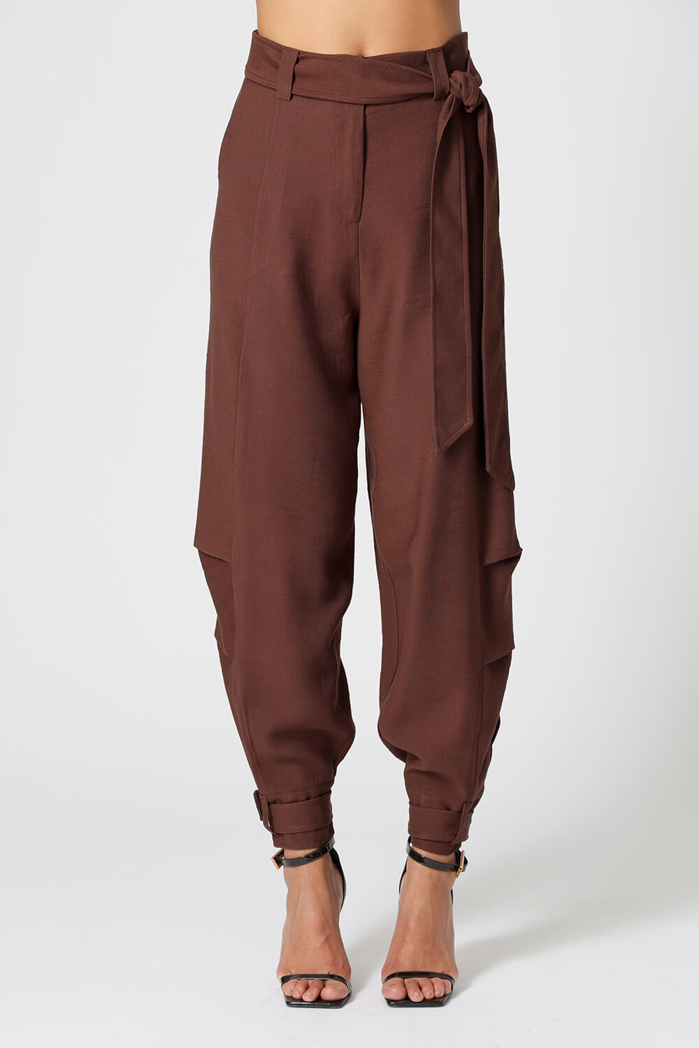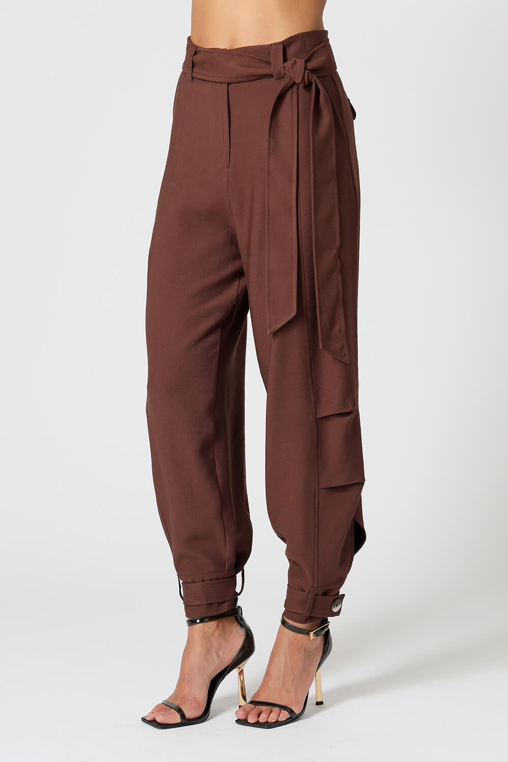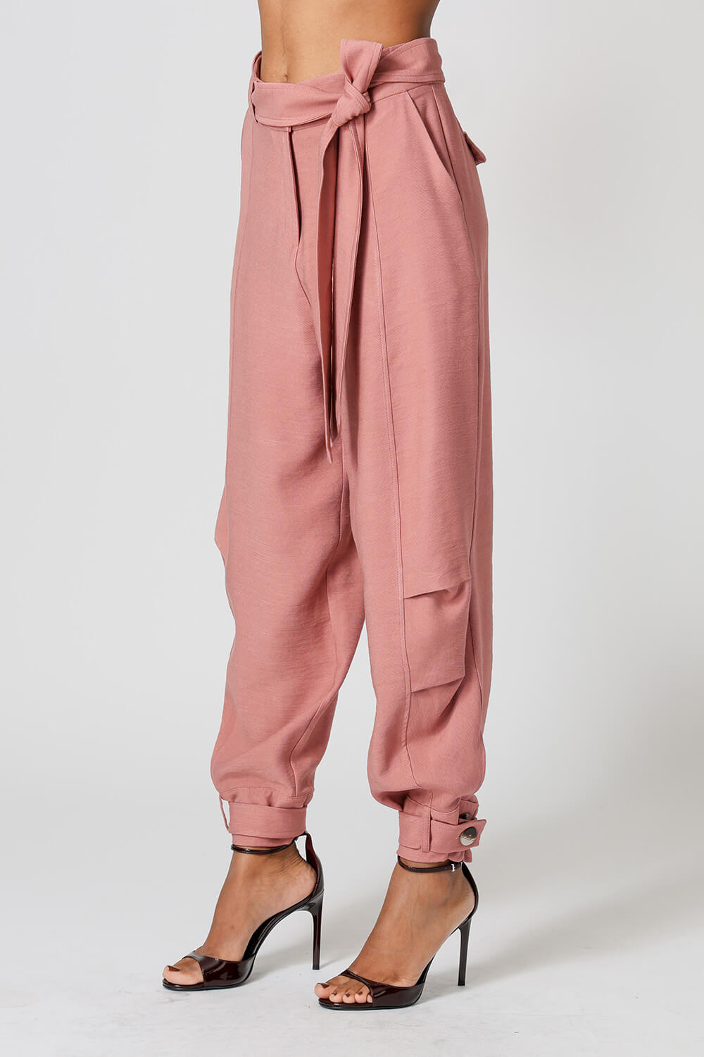 Calça em viscose heavy com modelagem elegante e detalhes que valorizam a peça. Possui pregas na lateral frontal da perna, martingale na barra para ajuste, faixa para amarração na cintura e lapela decorativa não funcional nas costas. Ideal para composições sofisticadas e modernas.