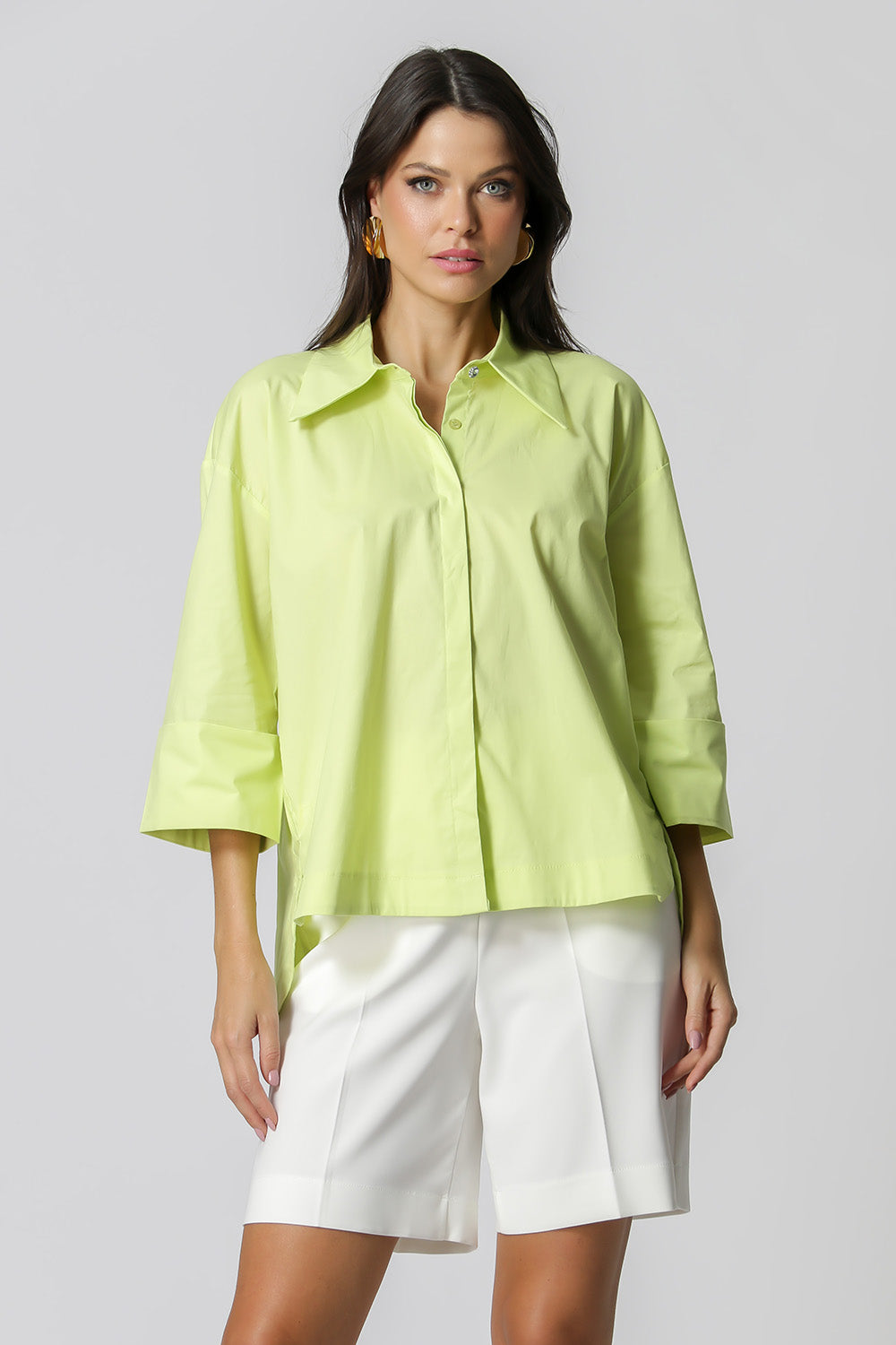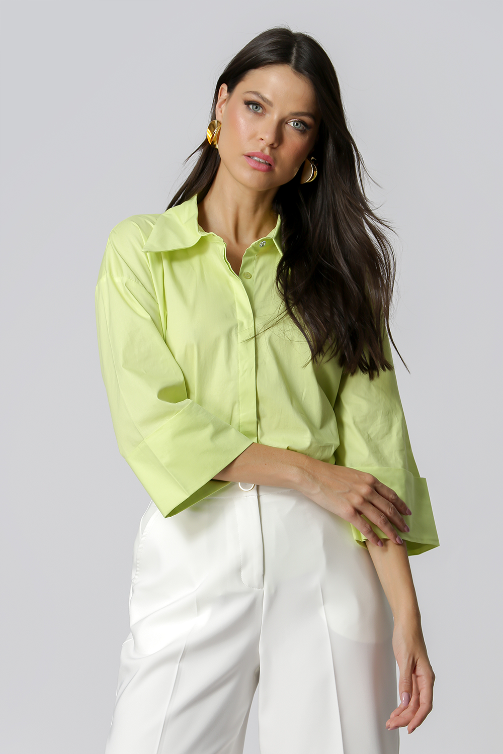 Camisa 3/4 com punho diferenciado. Peça confeccionada em tecido tricoline. Uma peça básica porém essencial para ter em seu guarda roupa e compor vários looks work.