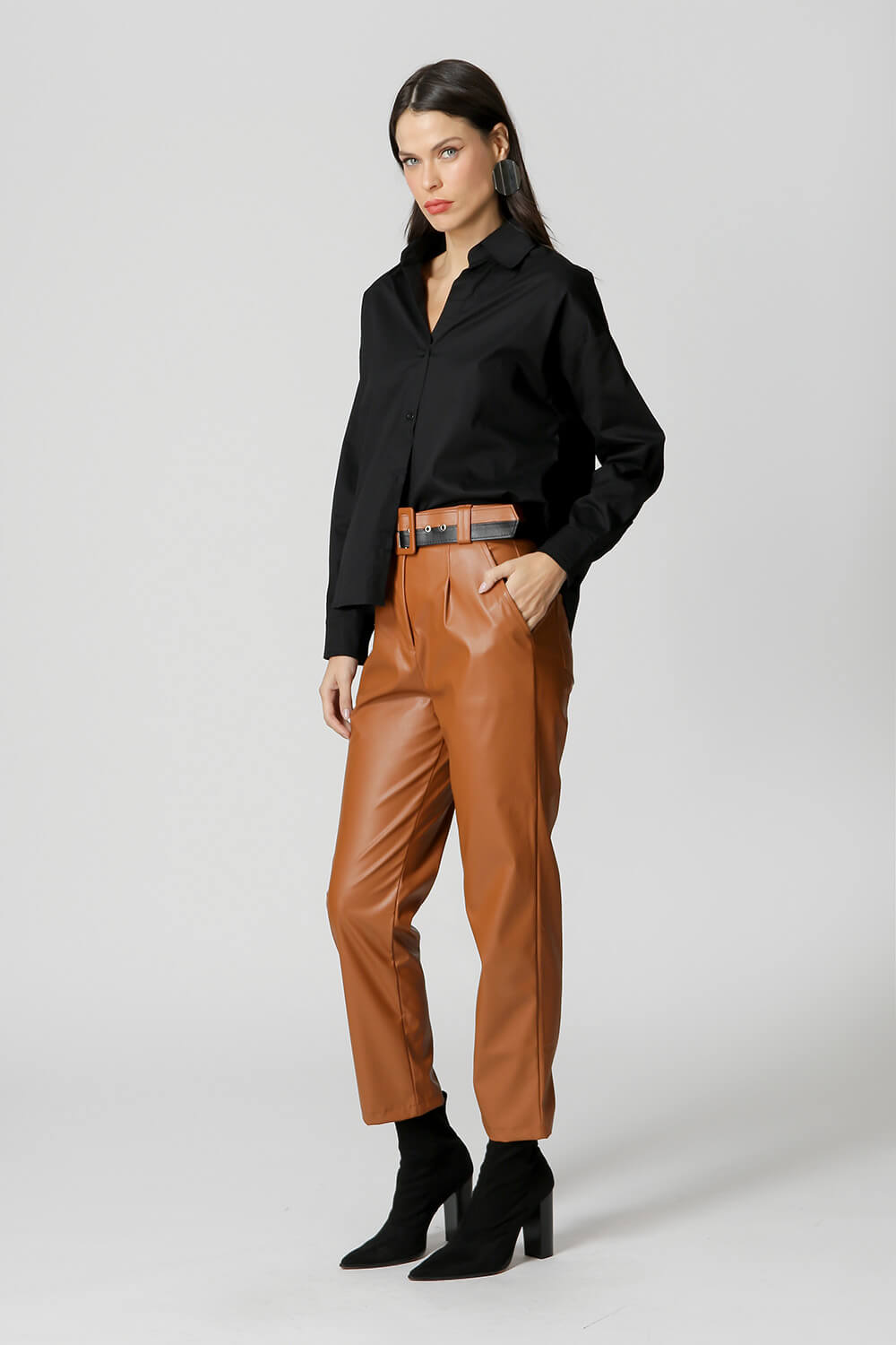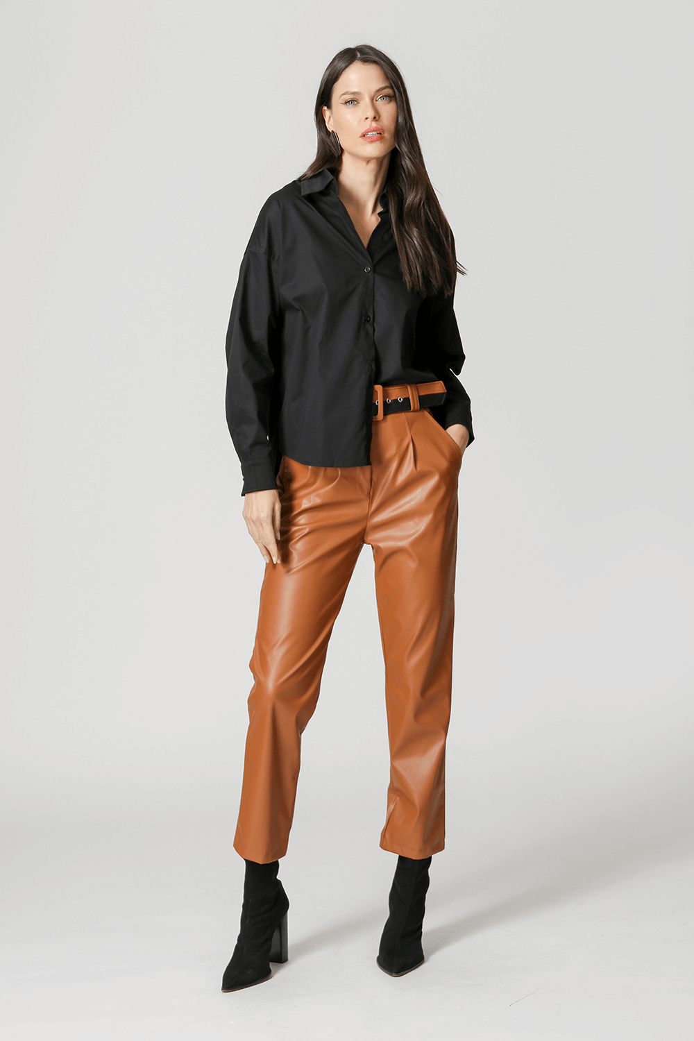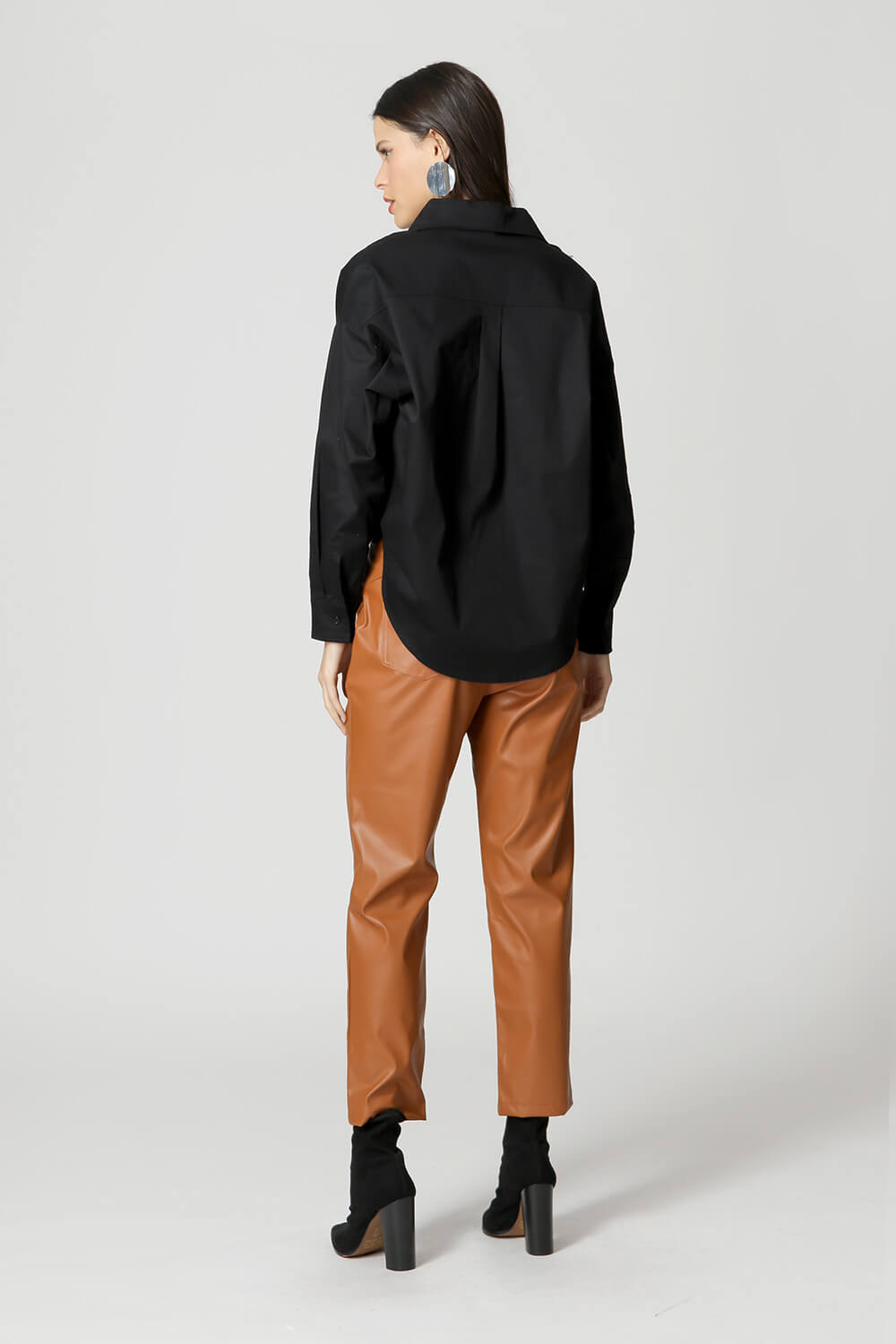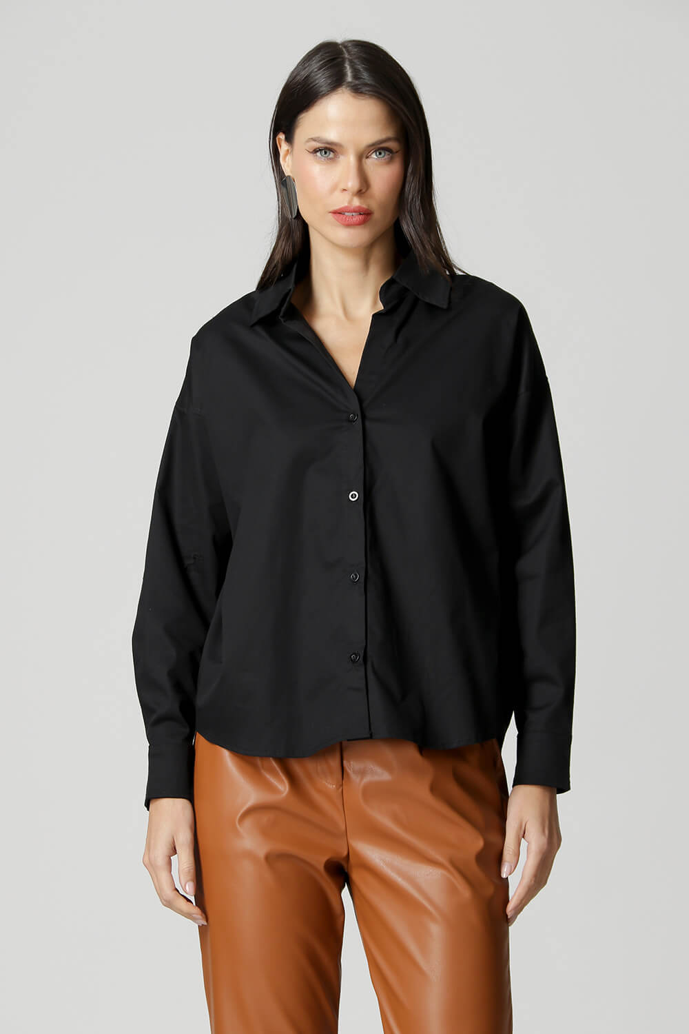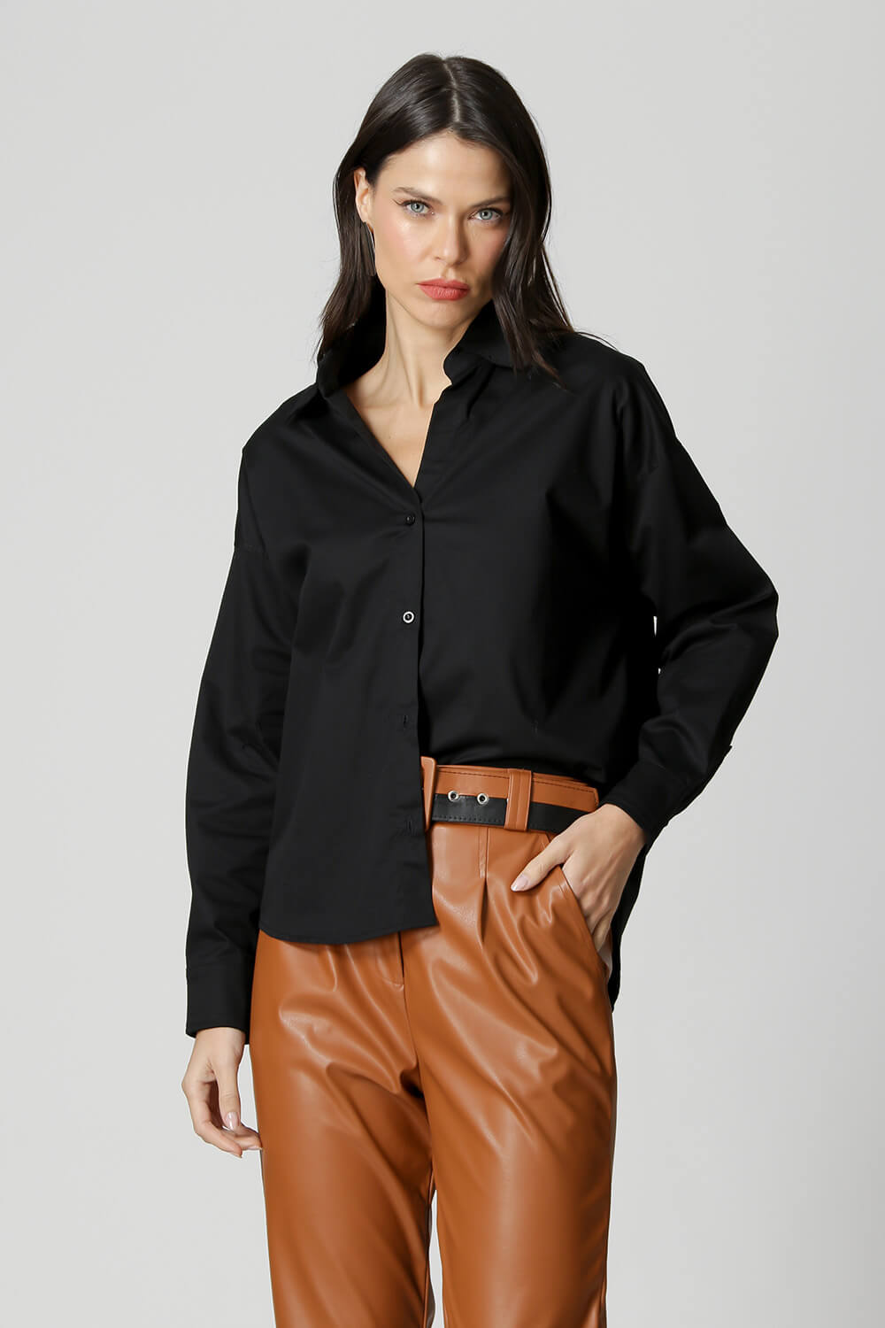 Camisa com shape solto, feito em tricoline. Possui detalhe de tiras para amarração. Um clássico moderno com um toque fashion.