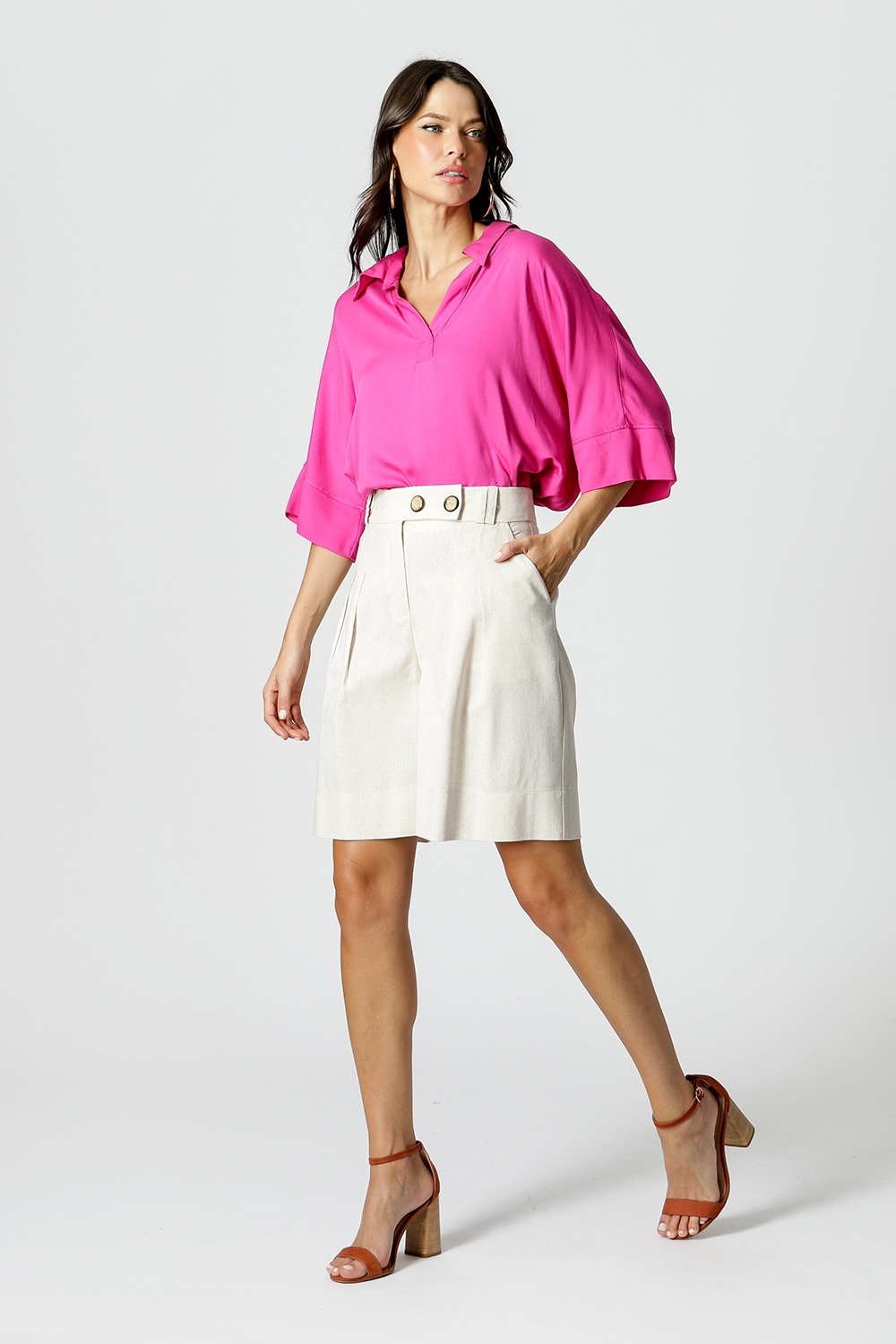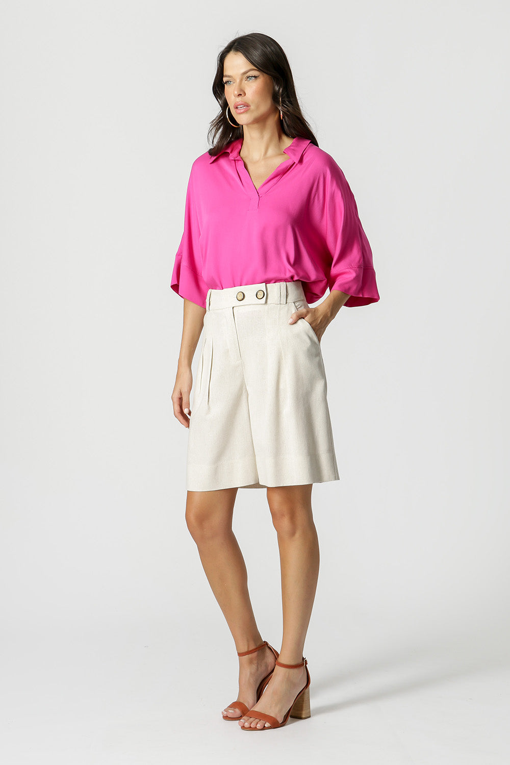 Camisa ampla com manga 3/4. Confeccionada em tecido Viscose fluída. Uma peça leve, fresca e despojada para compor looks no seu dia-a-dia com estilo.