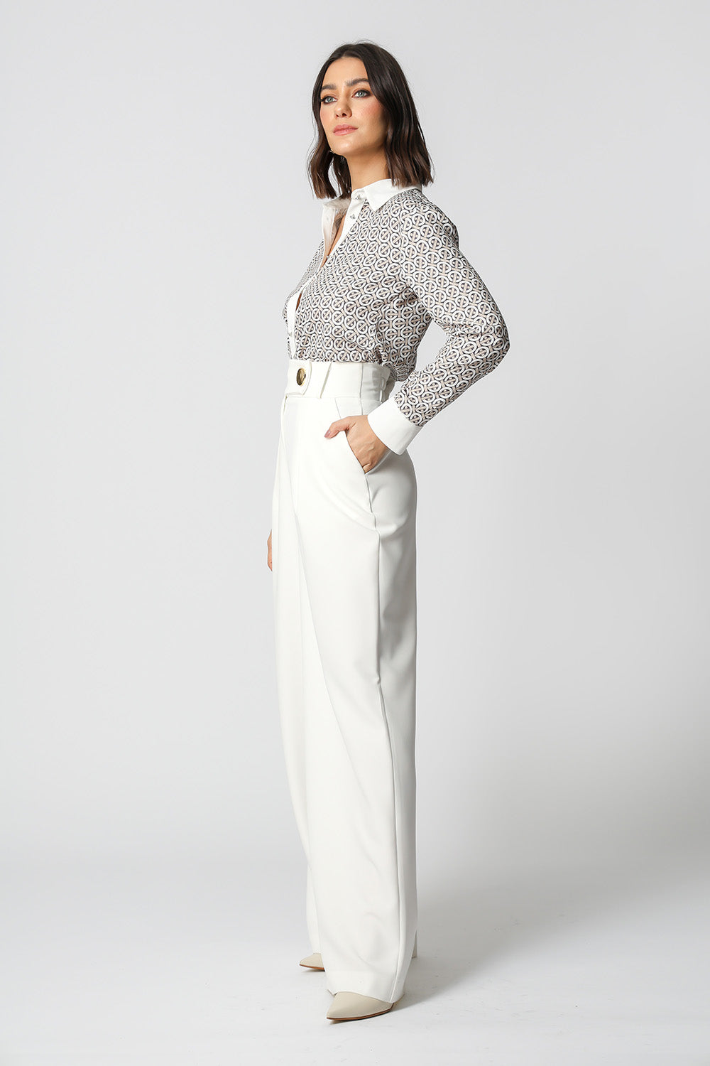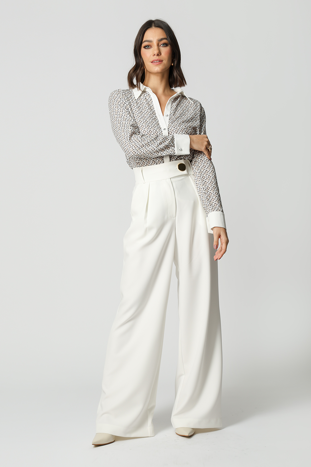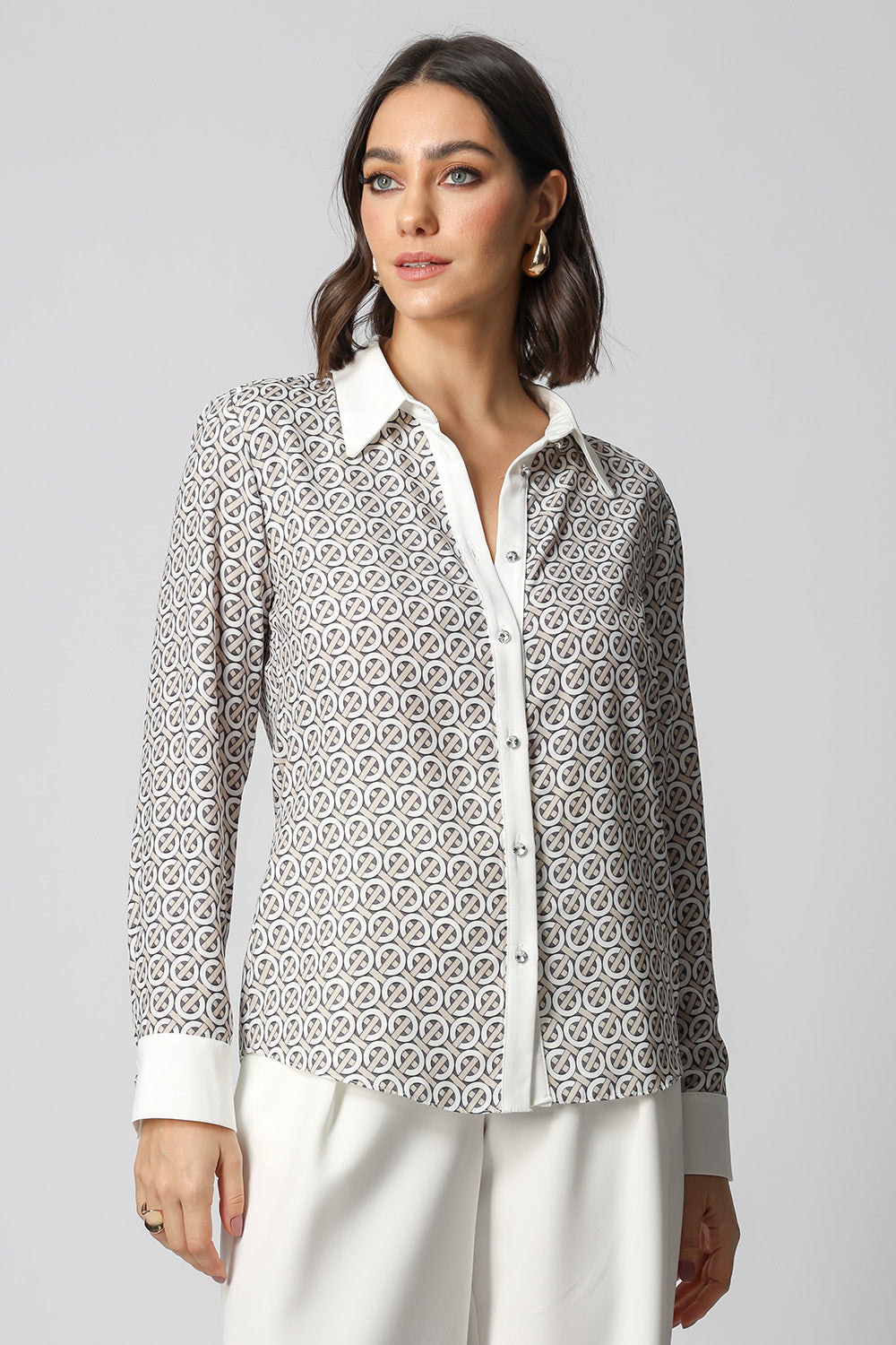 Camisa clássica estampada com botões diferenciados. Uma peça atemporal com estampa exclusiva, ideal para compor looks work!