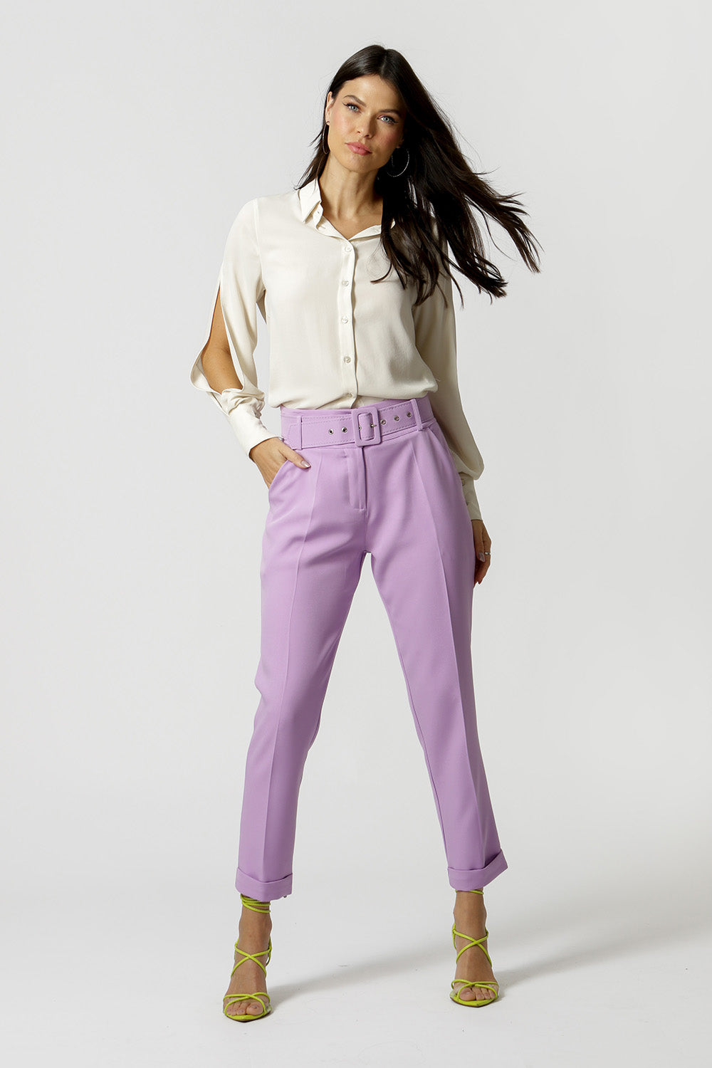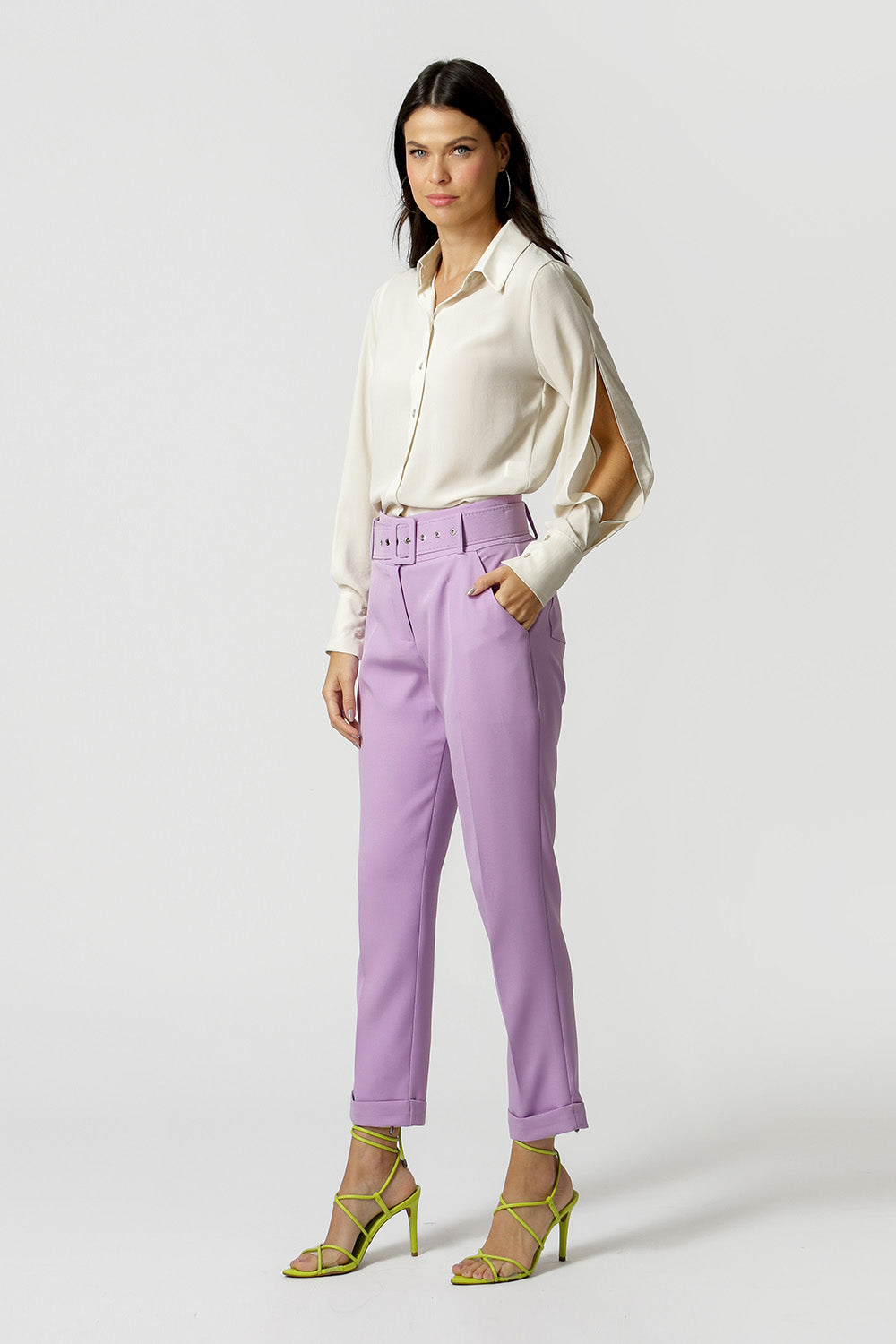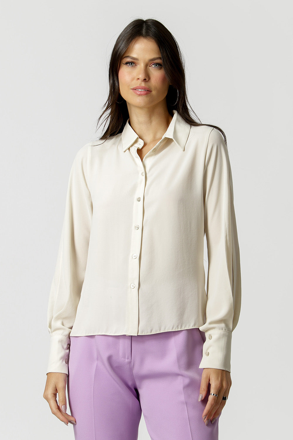Camisa feita em crepe fluido, com detalhes de abertura na manga. Peça coringa na composição de looks mais formais.