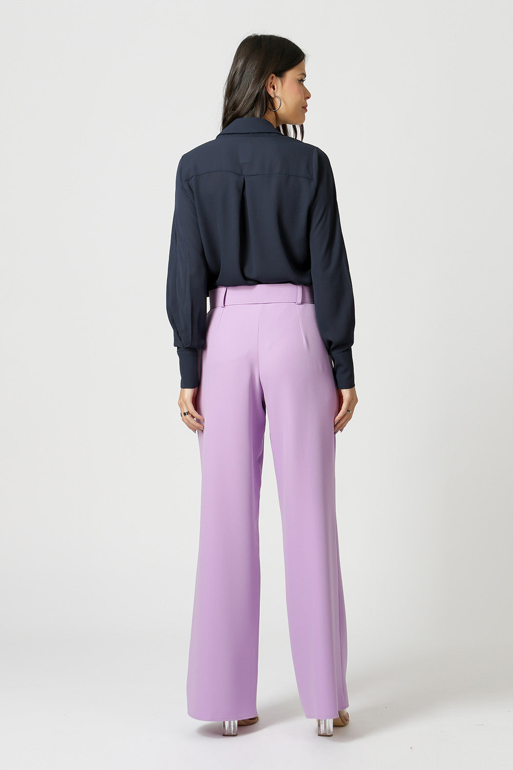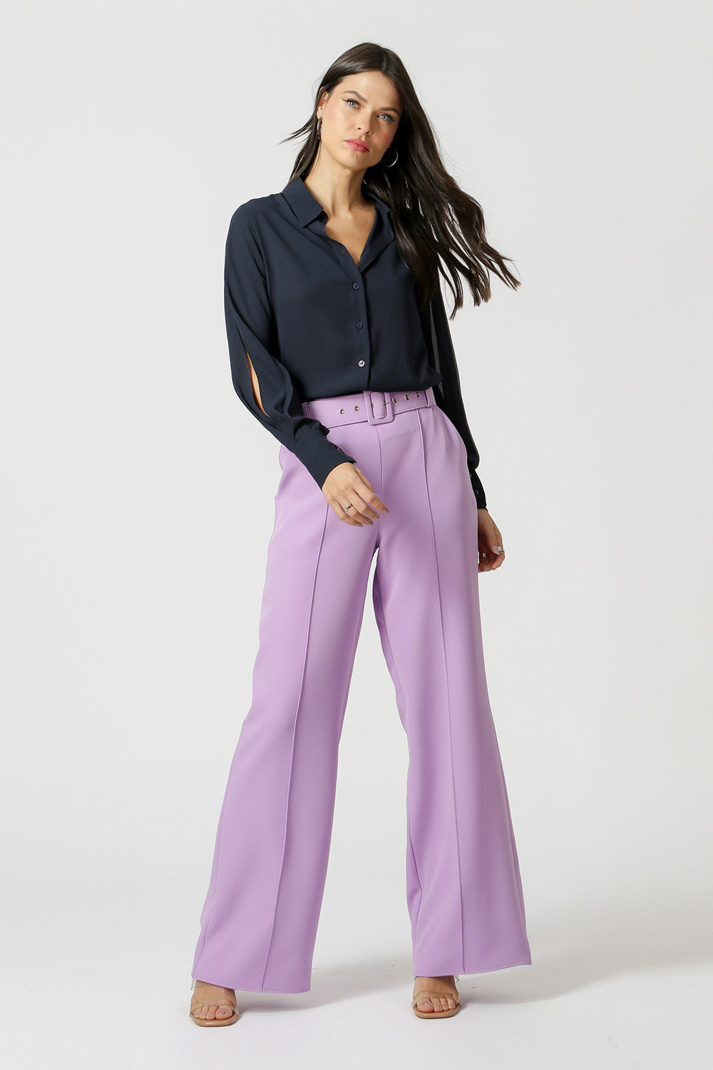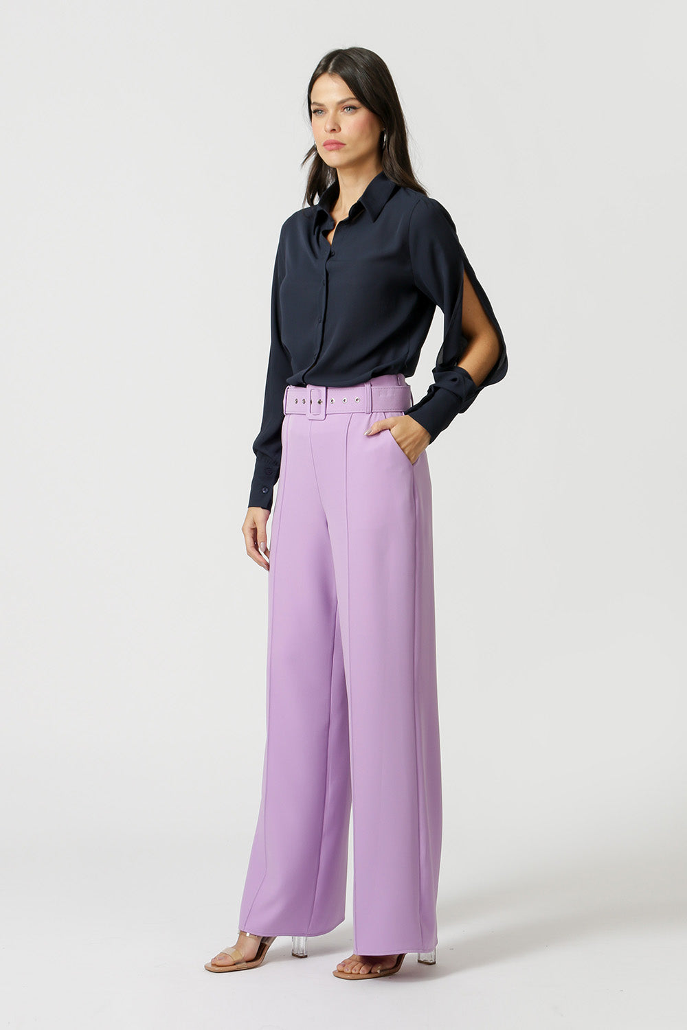 Camisa feita em crepe fluido, com detalhes de abertura na manga. Peça coringa na composição de looks mais formais.