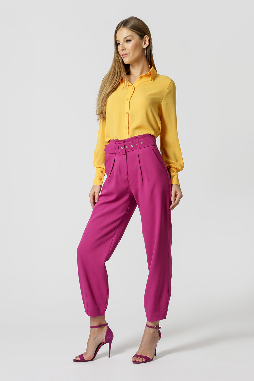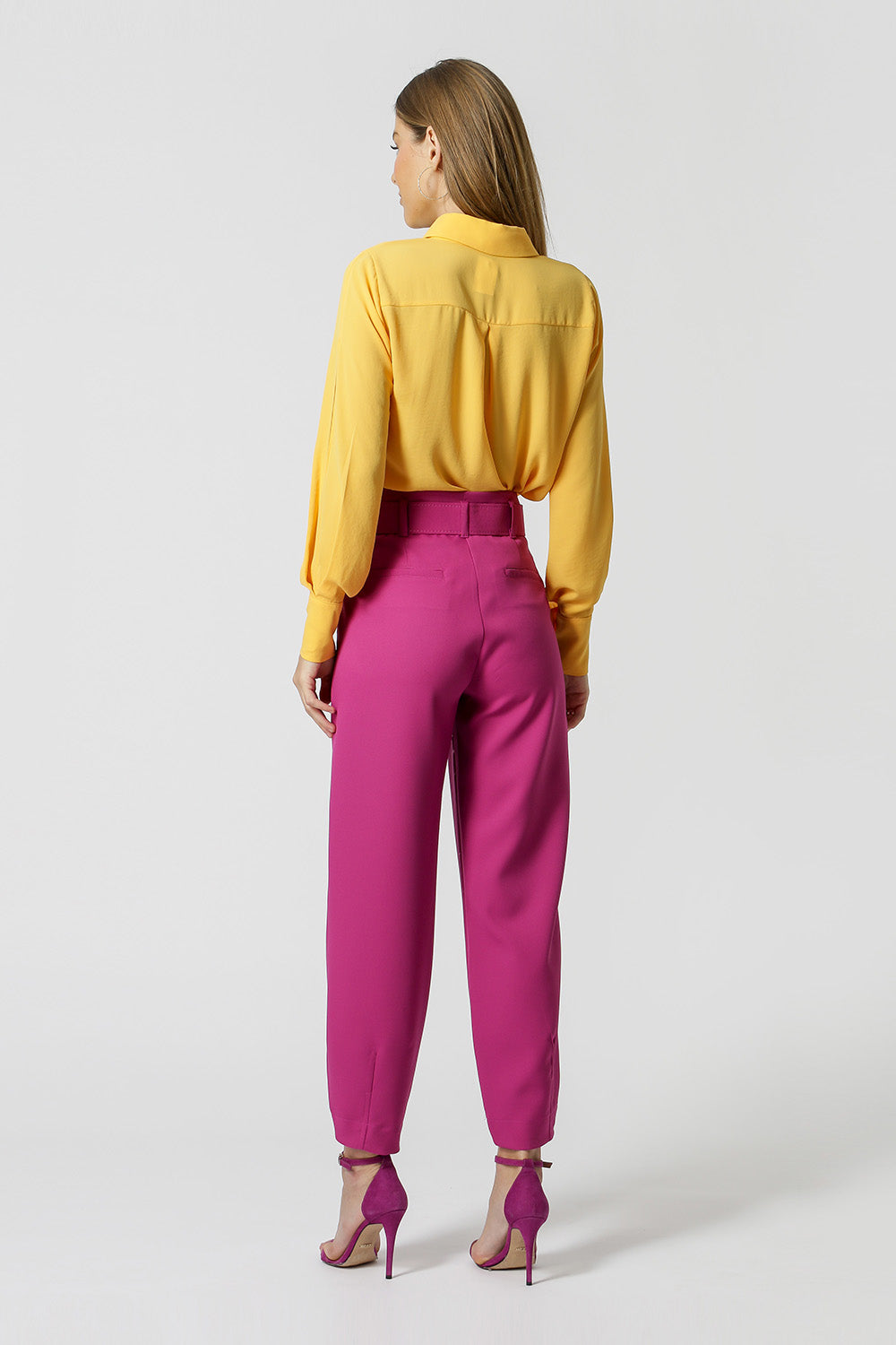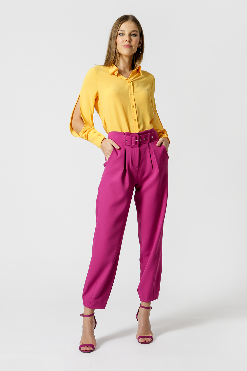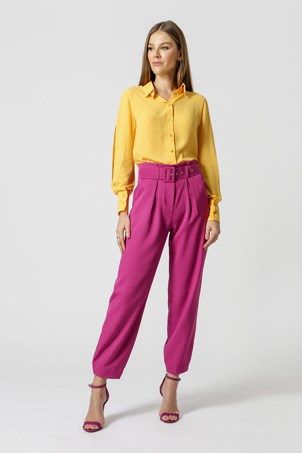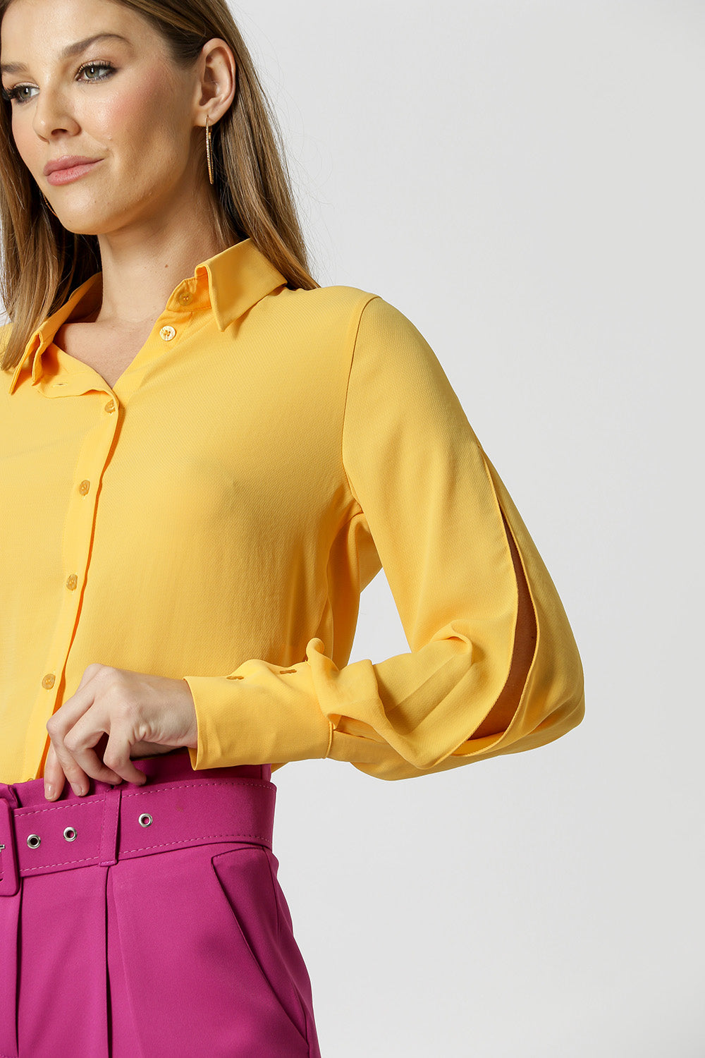 Camisa feita em crepe fluido, com detalhes de abertura na manga. Peça coringa na composição de looks mais formais.