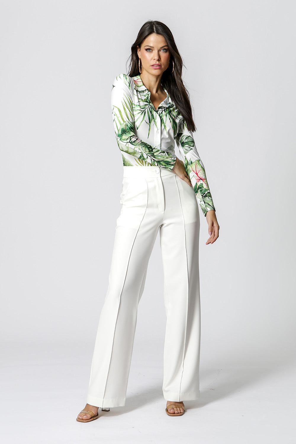 Camisa com manga longa e botões. Confeccionada em tecido malha leve estampada. Um modelo casual, confortável e perfeita para compor looks moderno.