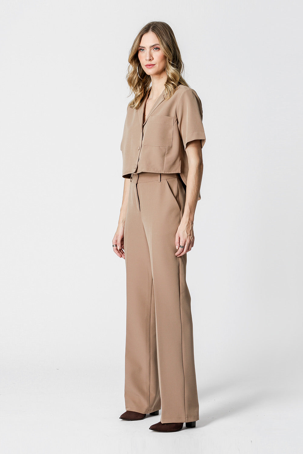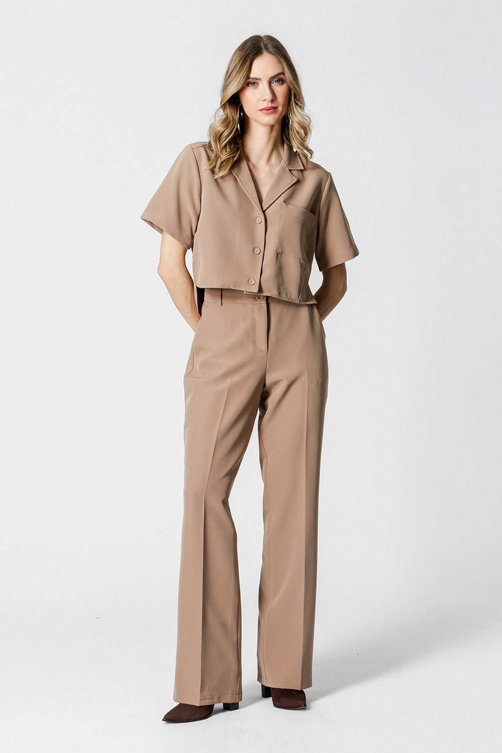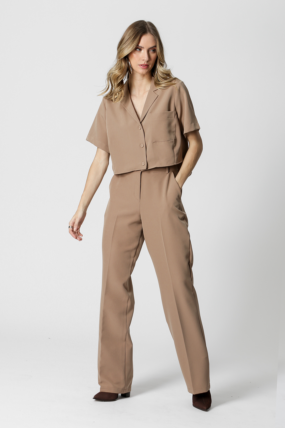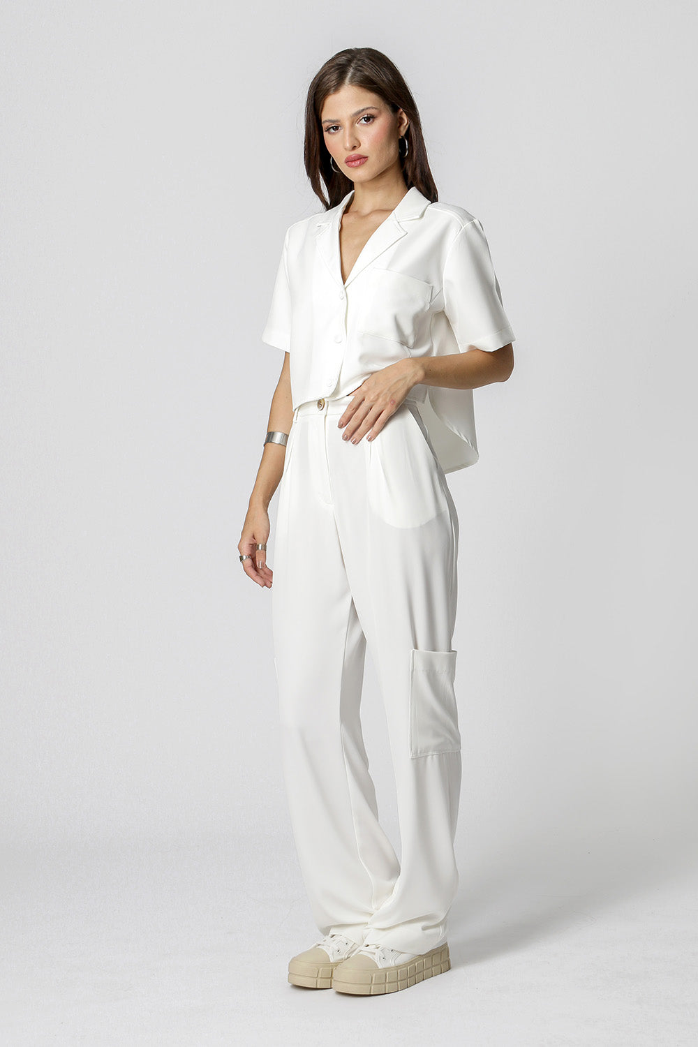 Camisa em alfaiataria com comprimento cropped, abertura frontal com botões forrados e bolso. Peça descontraída sem perder a elegância na composição do look work.