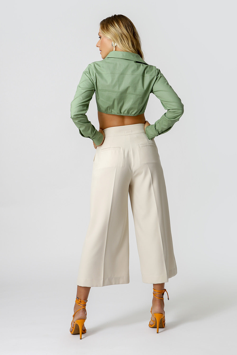 Camisa com shape cropped, manga longa e detalhe no punho. Peça feita em tricoline. Peça fashionista, que vai dar um UP no seu look.